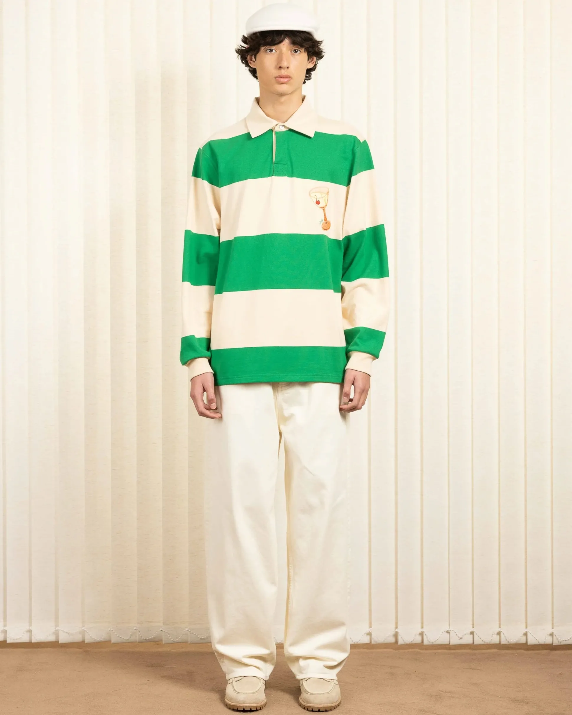 This green 100% cotton long-sleeved striped polo features a Cocktail embroidery on the chest. It has a loose fit, ribbed finishes and three engraved buttons.• Long-sleeved striped polo • Cocktail embroidery on the chest• Loose fit • Ribbed finishes • 3 engraved buttons• 100% cotton Color: GreenMade in Portugal