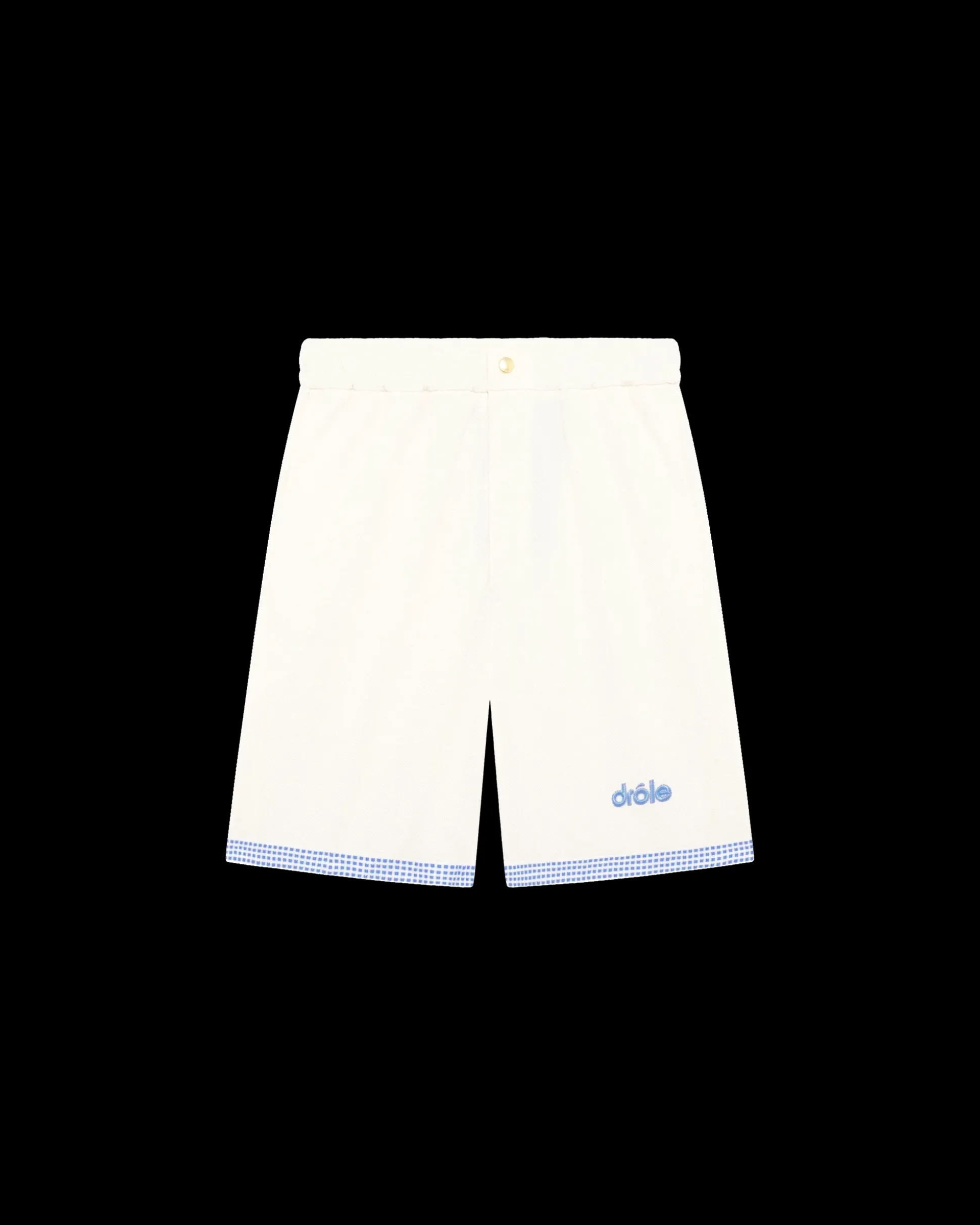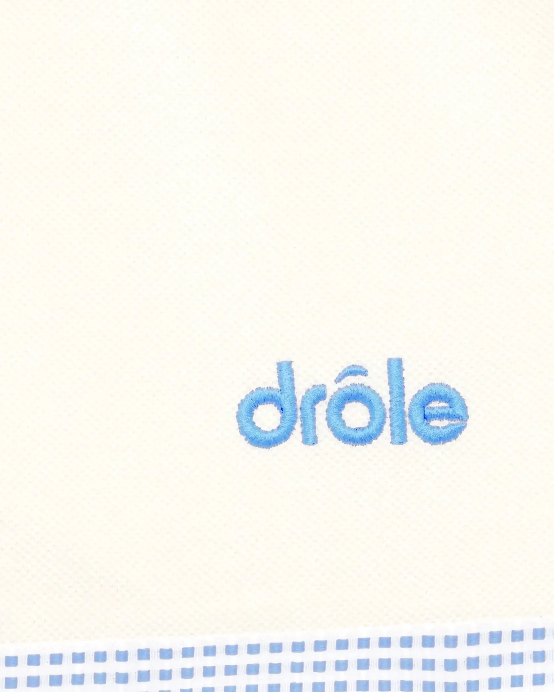 These off-white 100% cotton piqué shorts feature a ‘Drôle’ embroidery on the front and contrast piping on the legs. They have an elasticated waist, one engraved snap button, an inside drawstring and a zip closure.• ‘Drôle’ embroidery• Contrast piping on the legs• Elasticated waist• 1 engraved snap button• Inside drawstring• Zip closure• 100% cotton piquéColor: Off whiteMade in Portugal