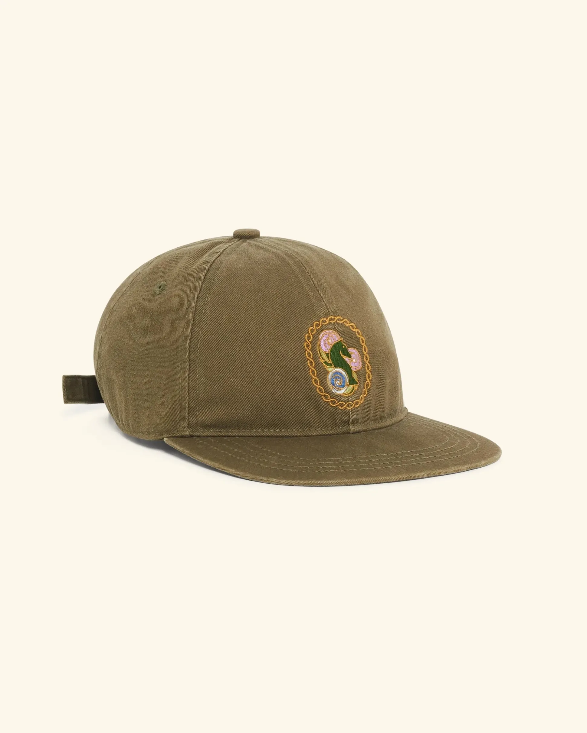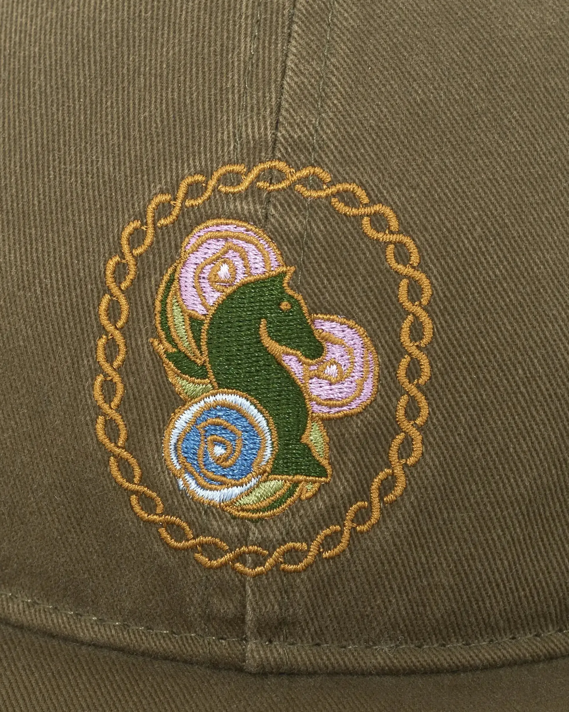This khaki 100% cotton 6-panel baseball hat has a flat visor, an adjustable strap and a braided metal buckle. It features the Cavalier embroidery on the front.• 100% cotton• 6 panels• Cavalier embroidery• Flat visor• Adjustable strap• Braided metal buckleColor: Khaki