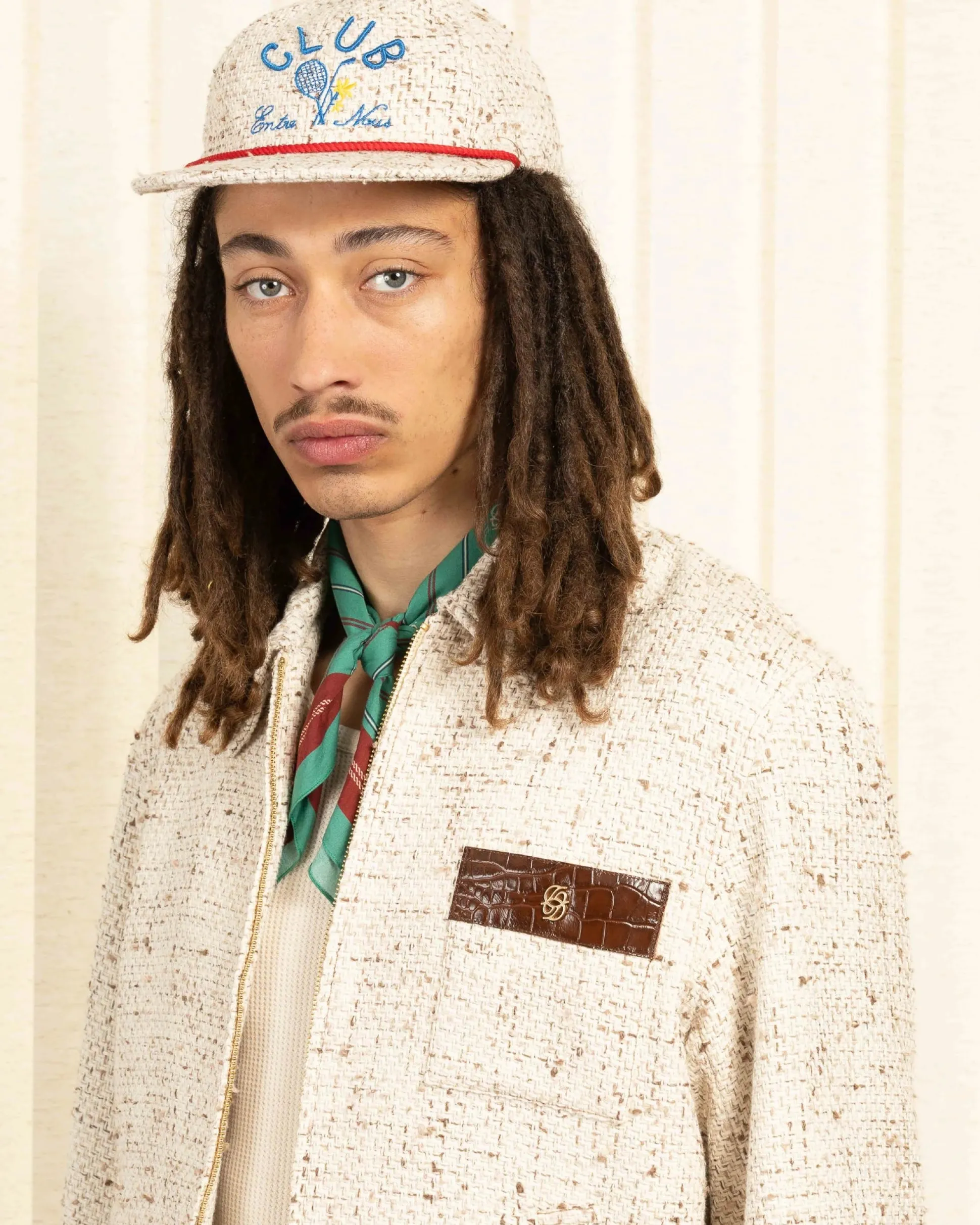 This off-white 6-panel baseball hat is made from a cotton blend tweed fabric and features the Drôle Club embroidery on the front. It has an adjustable strap and a braided metal buckle. • Tweed baseball hat• 6 panels• Drôle Club embroidery on the front• Adjustable strap• Braided metal buckle• 94% cotton, 1% polyamid and 5% polyesterColor: Off white Made in Europe
