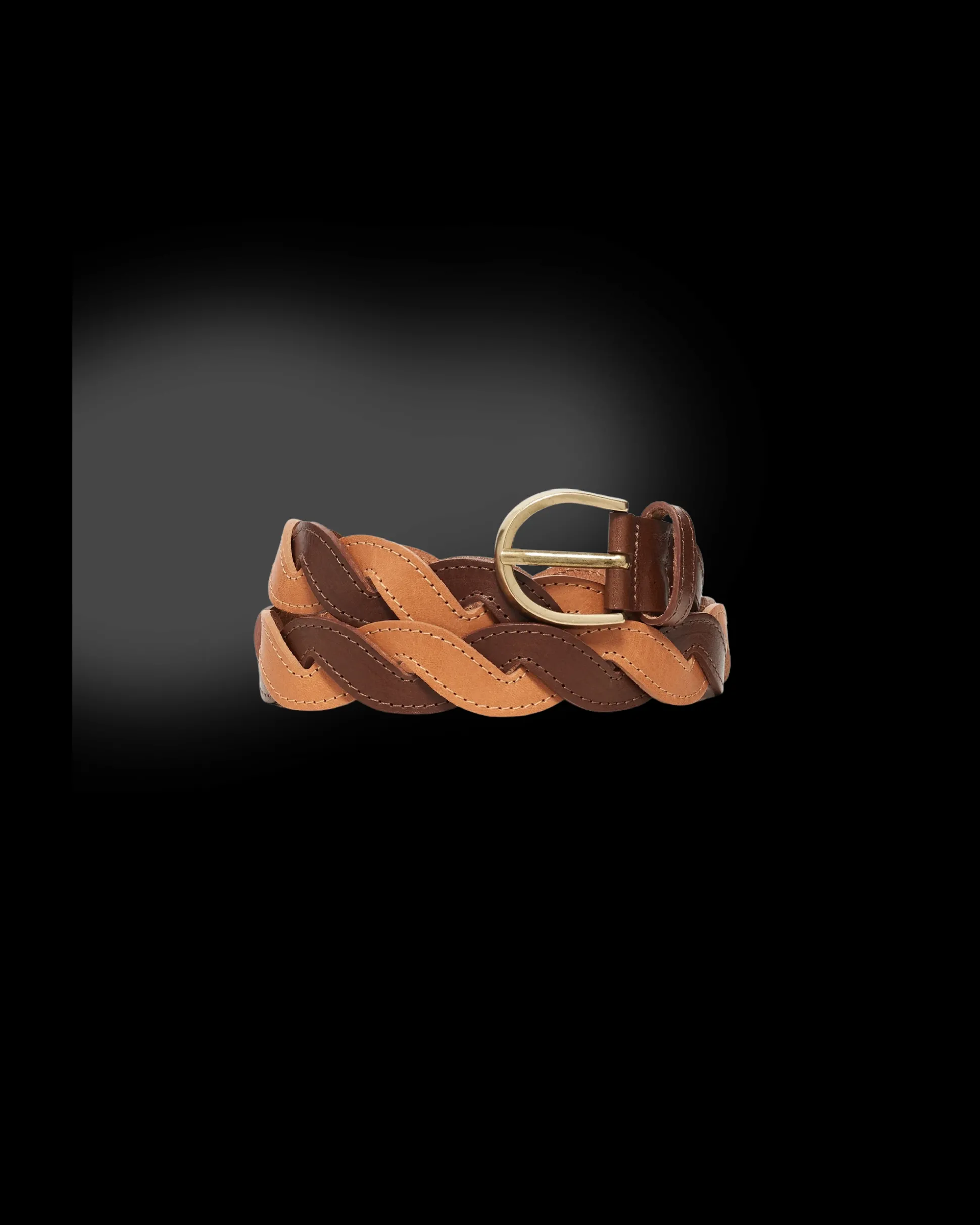 This brown 100% leather braided belt has one belt loop with a golden buckle. It measures 3cm wide. • Braided belt• 1 belt loop• Golden buckle• Width 3cm• 100% leatherColor: CognacMade in France