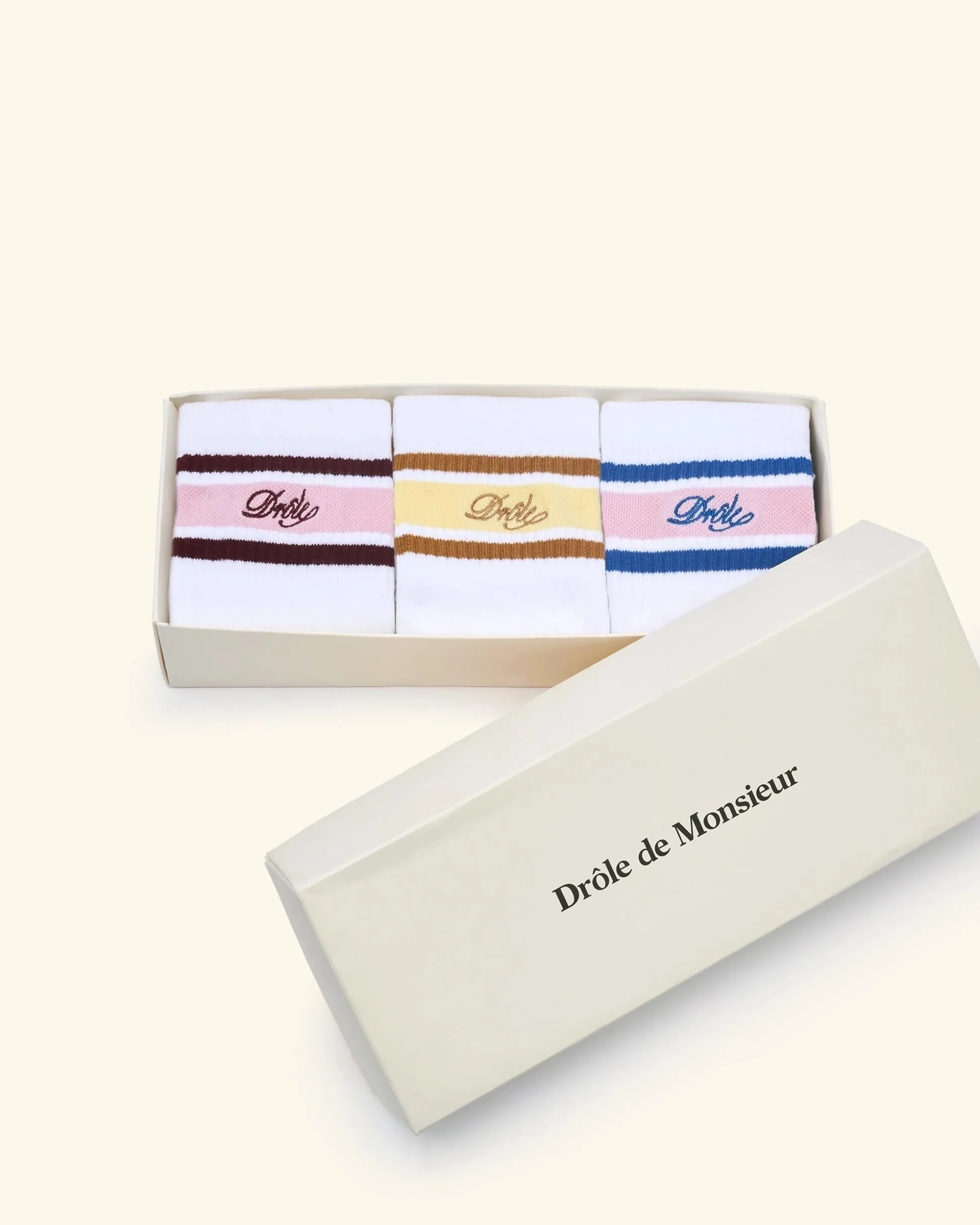These calf-high stretch cotton-blend intarsia socks have a cushion footbed and feature the ‘Drôle’ logo. They come in a pack of three (purple, orange and blue).• Calf-high stretch cotton-blend socks• Intarsia technique• Cushion footbed• Logo ‘Drôle’• 80% cotton, 18% polyamid and 2% elastaneColor: MulticolorMade in Portugal