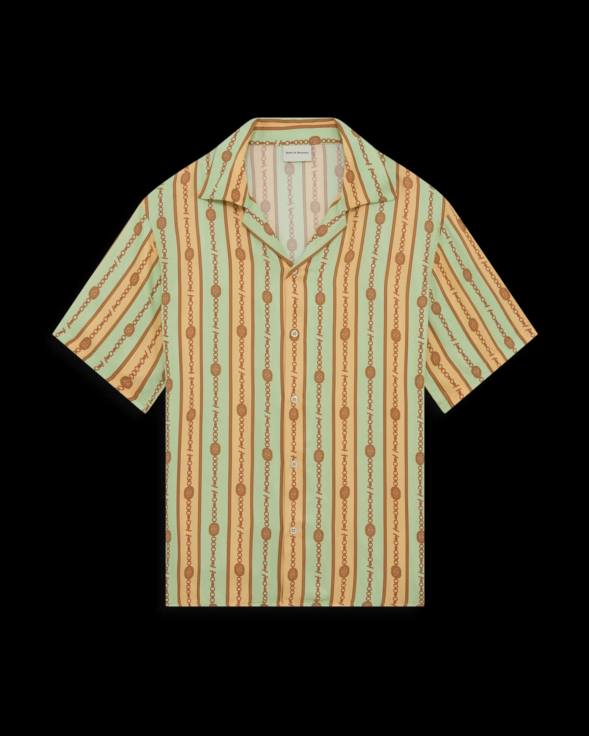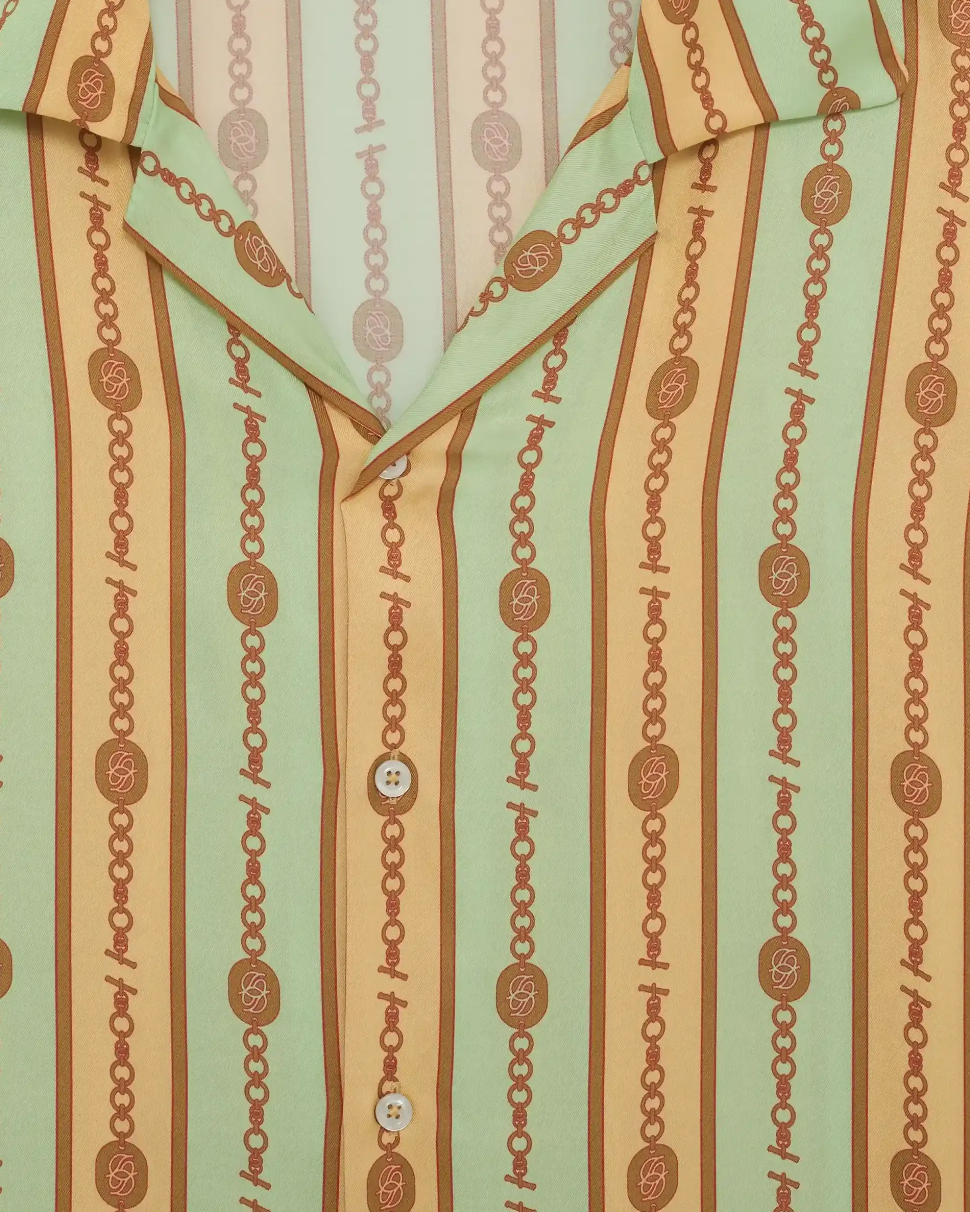 This light green short-sleeved shirt is printed with the Bijoux pattern. It has an open collar, a loose fit and five engraved front buttons.• Short-sleeved shirt• Bijoux print• Open collar• Loose fit• 5 engraved front buttons• 100% viscoseColor: Light greenMade in Portugal