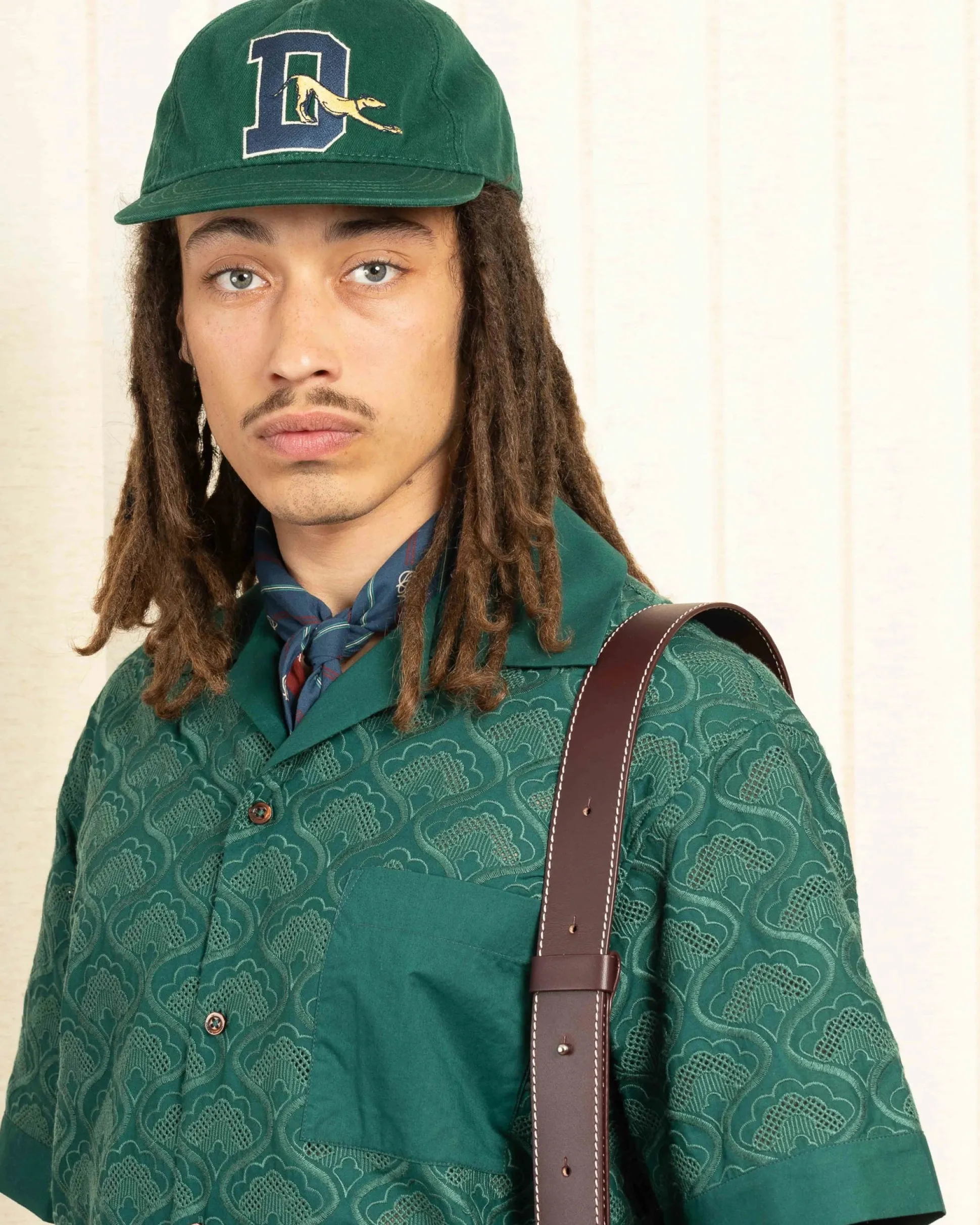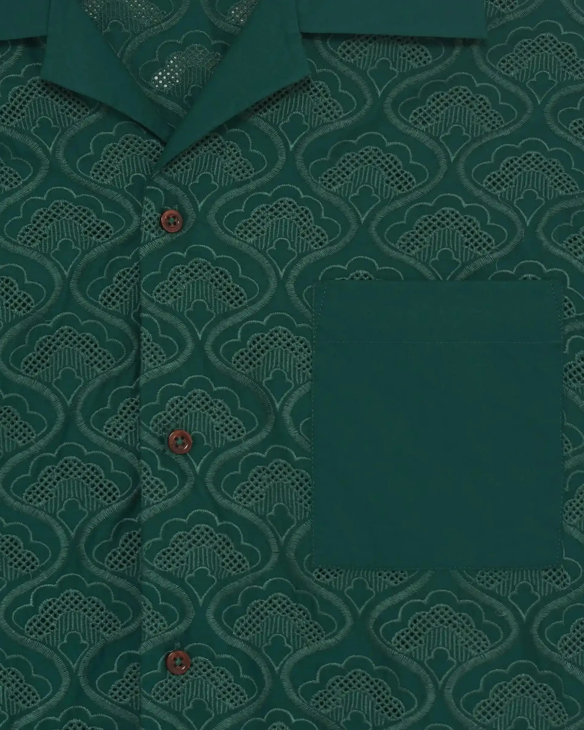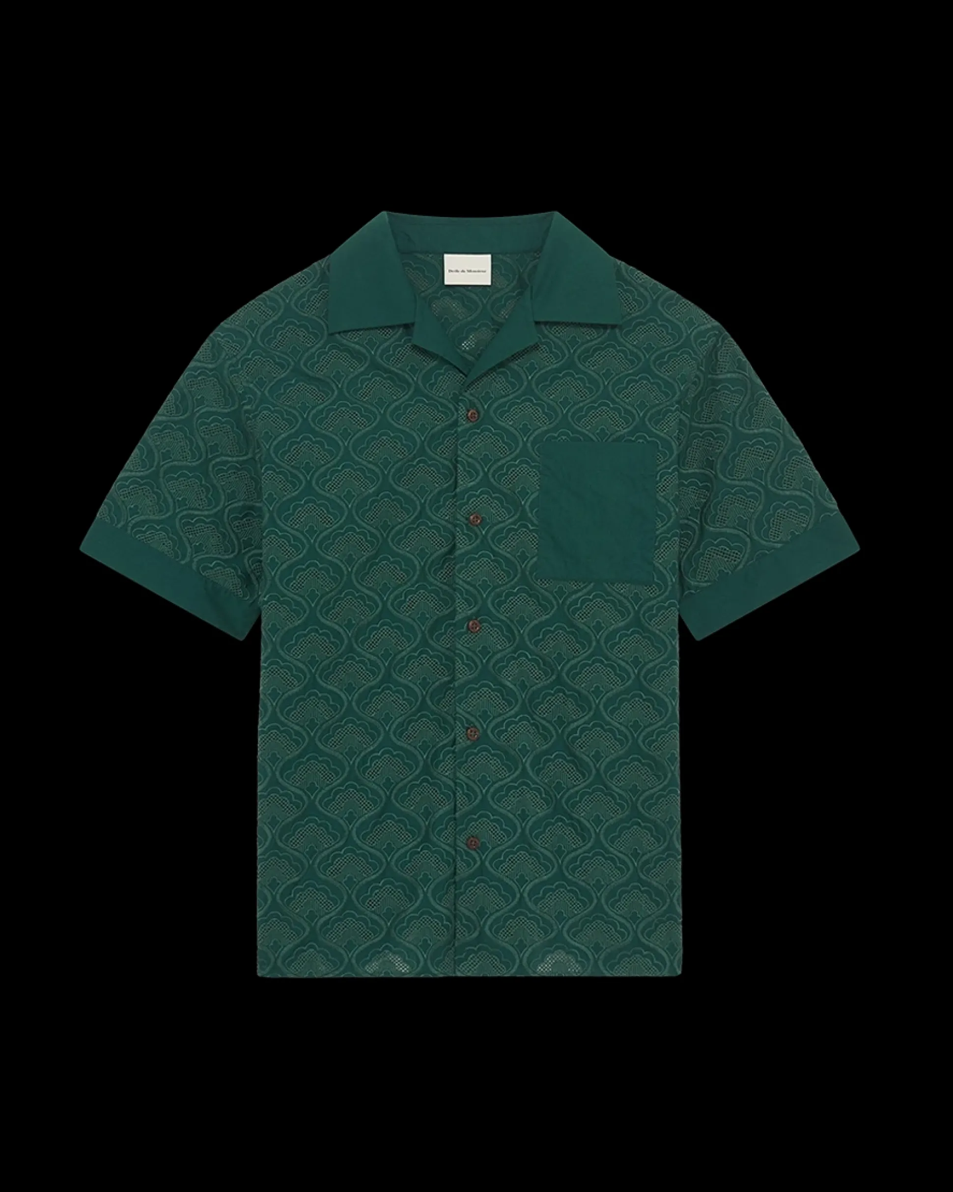 This dark green short-sleeved cotton blend shirt is embroidered with the Tapisserie pattern. It has an open collar, a loose fit and five front buttons.• Short-sleeved shirt• Tapisserie embroidery• Open collar• Loose fit• 5 front buttons• 50% cotton and 50% polyesterColor: Dark green