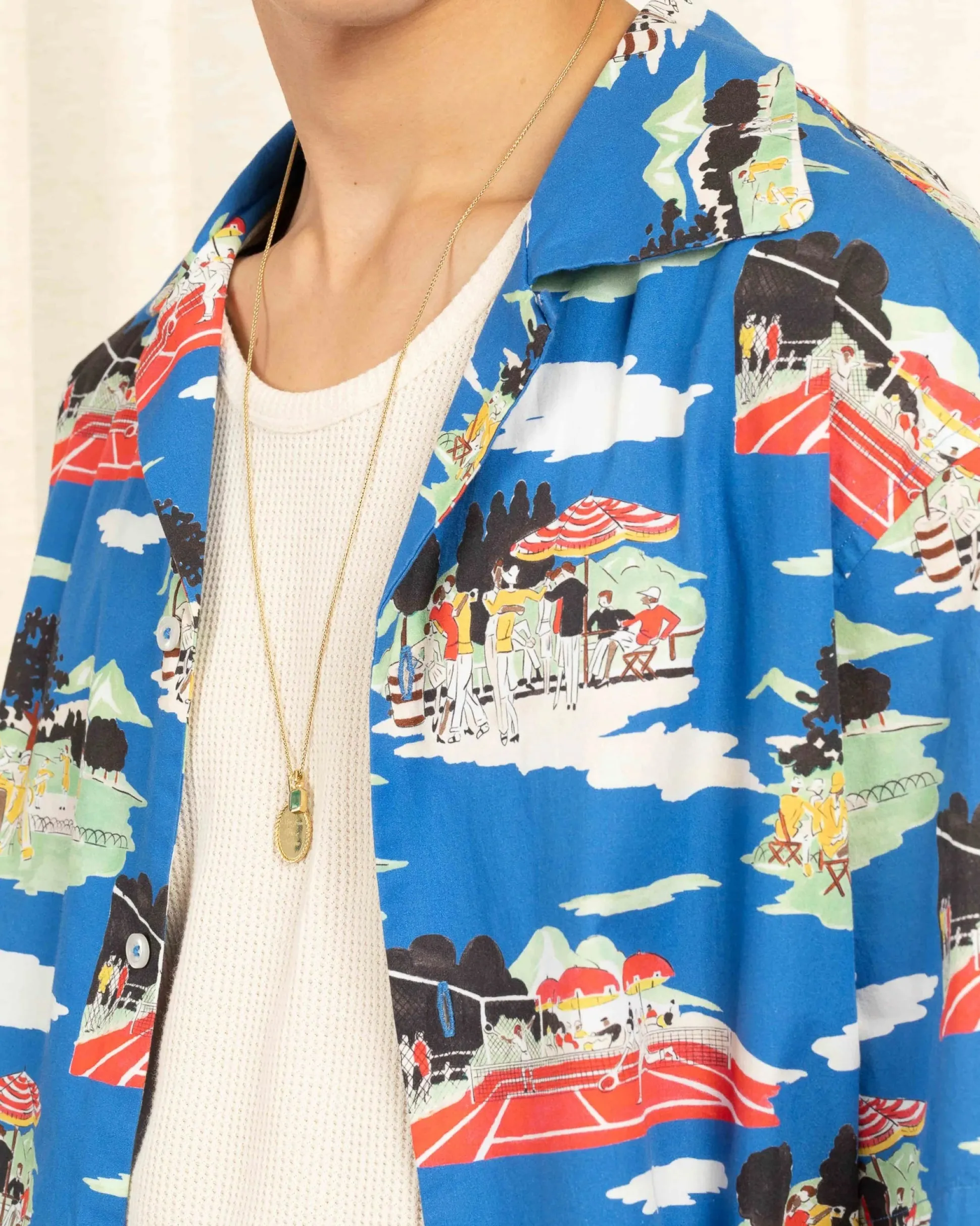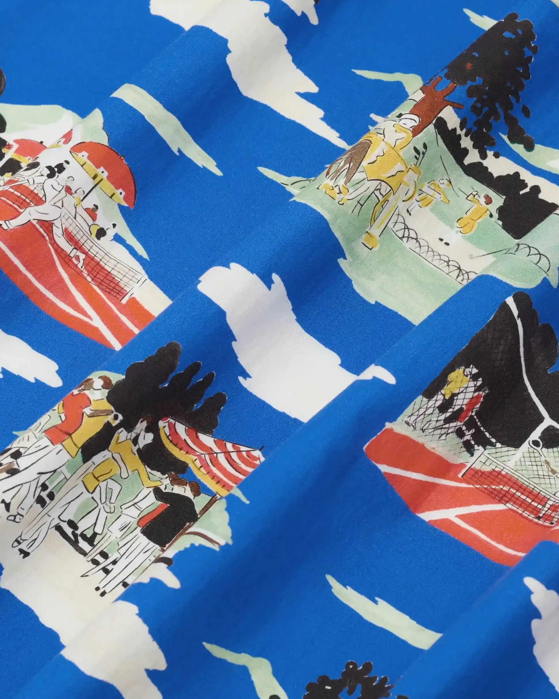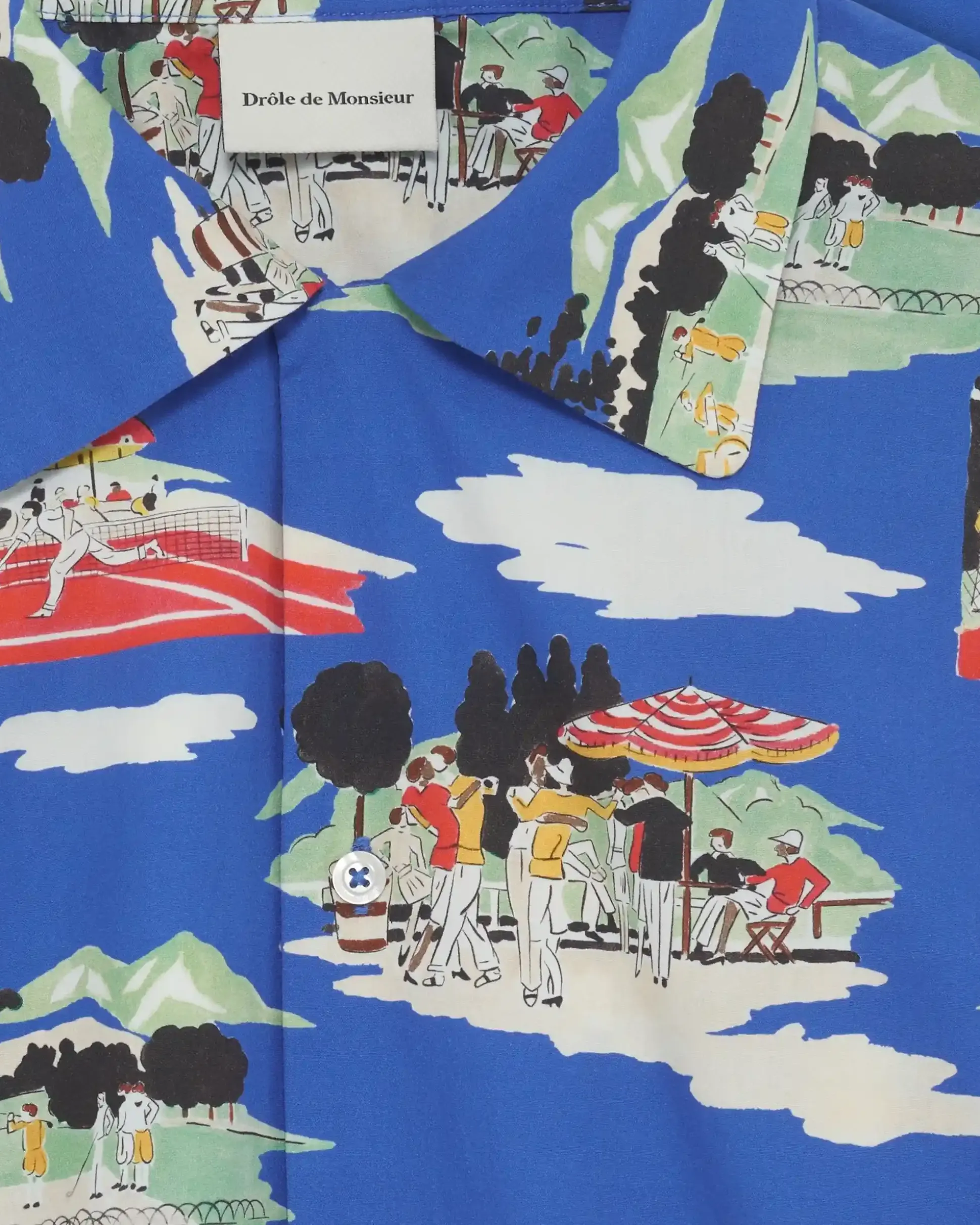 This blue short-sleeved 100% cotton shirt is printed with the Country Club pattern. It has an open collar, a loose fit and five engraved front buttons.• Short-sleeved shirt• Country Club print • Open collar• Loose fit • 5 engraved front buttons• 100% cottonColor: BlueMade in Portugal