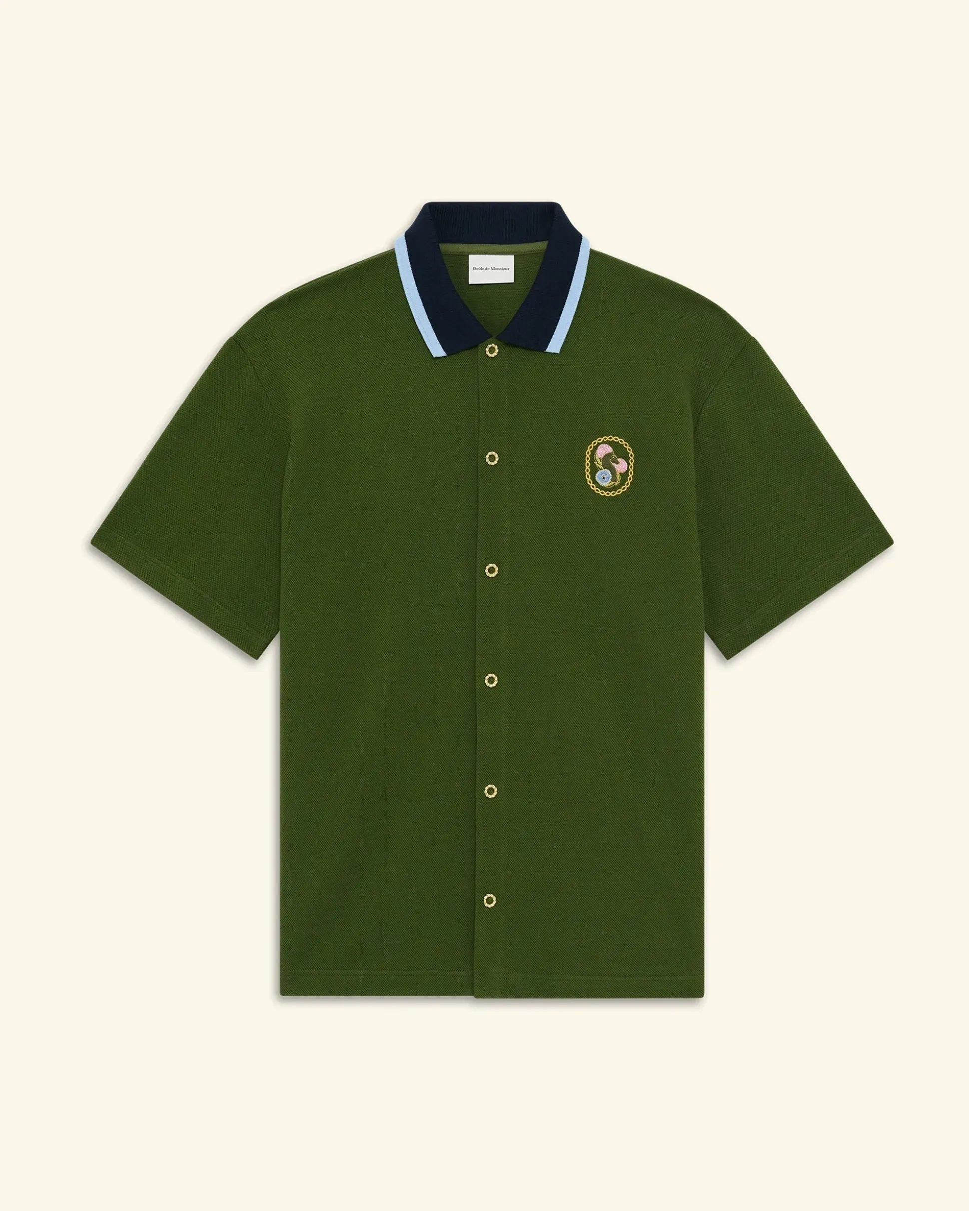 This khaki short-sleeved 100% cotton shirt features a Cavalier embroidery on the chest and back. It has a contrast ribbed collar, a loose fit and five engraved snap buttons on the front.• Piqué cotton• Short sleeves• Contrast ribbed collar• Loose fit• Cavalier embroidery on the chest and back• 5 engraved snap buttons on the frontColor: KhakiMade in Portugal