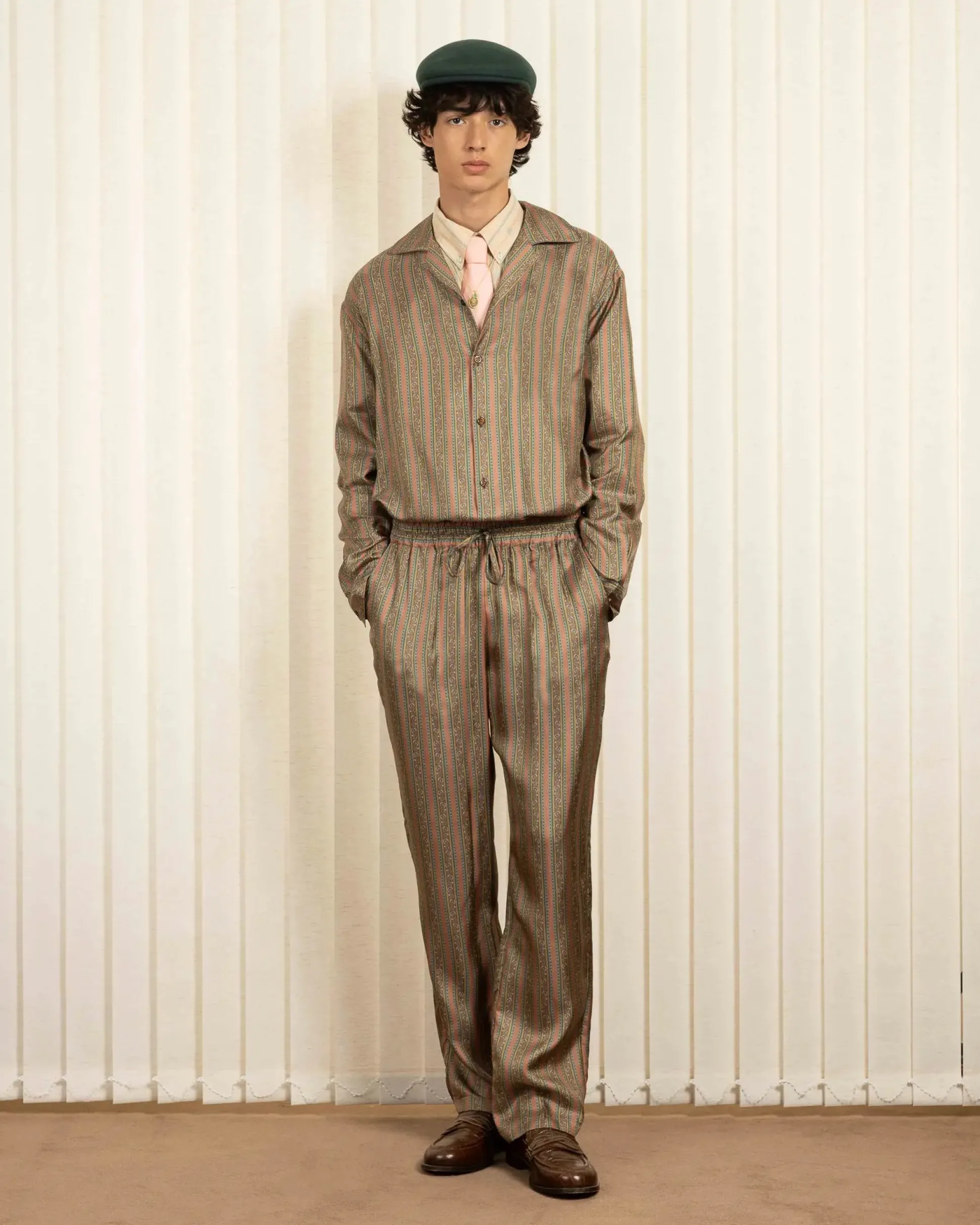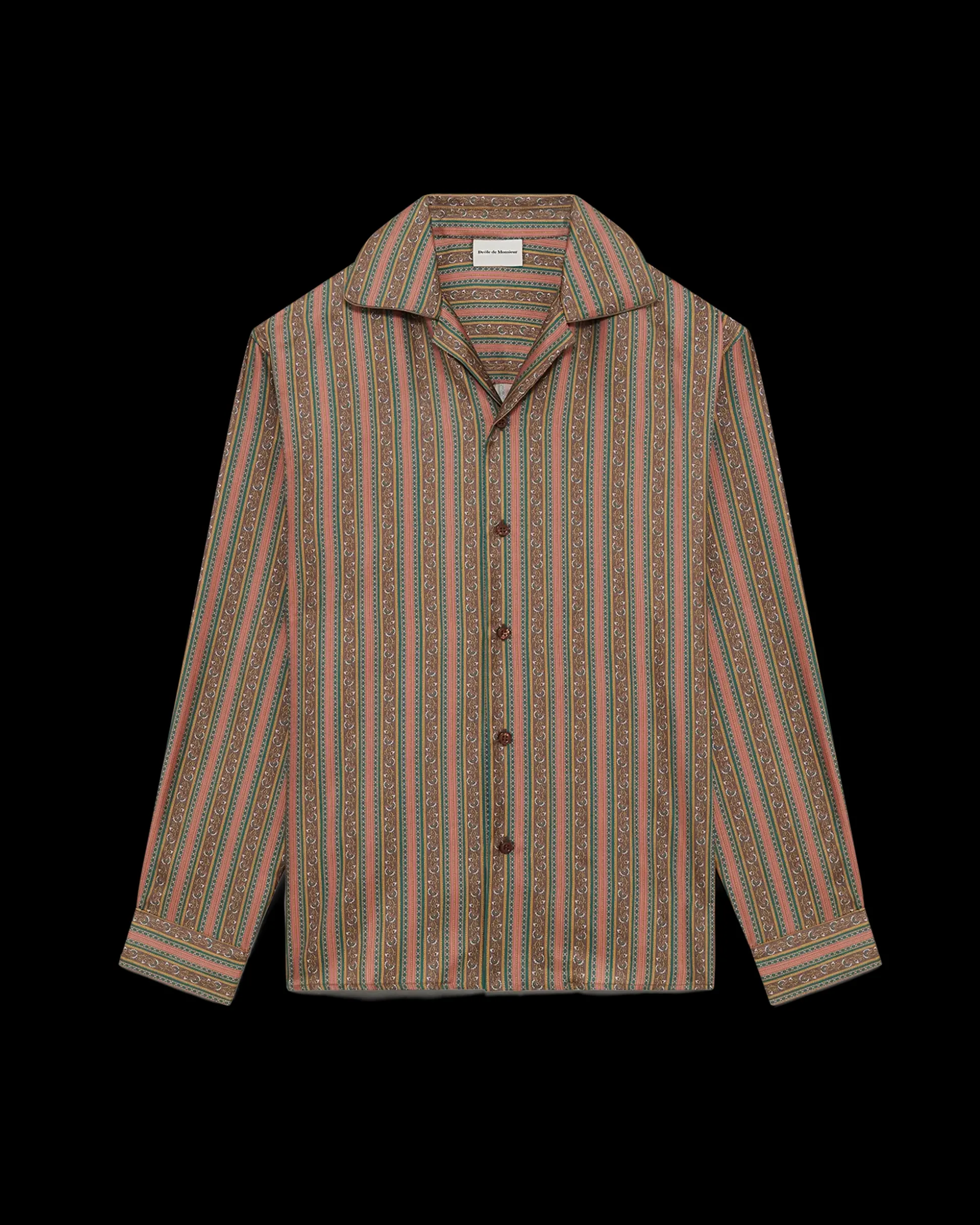 This light pink long-sleeved 100% silk shirt is printed with the Rayures Fleuries pattern. It has an open collar, a loose fit and five engraved front buttons.• Long-sleeved shirt• Rayures fleuries pattern• Open collar• Loose fit• 5 engraved front buttons• 100% silk Color: Light pinkMade in Europe