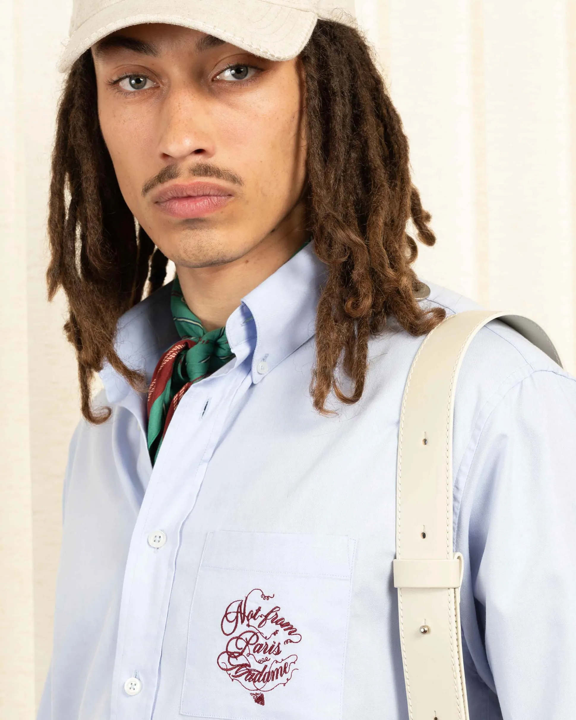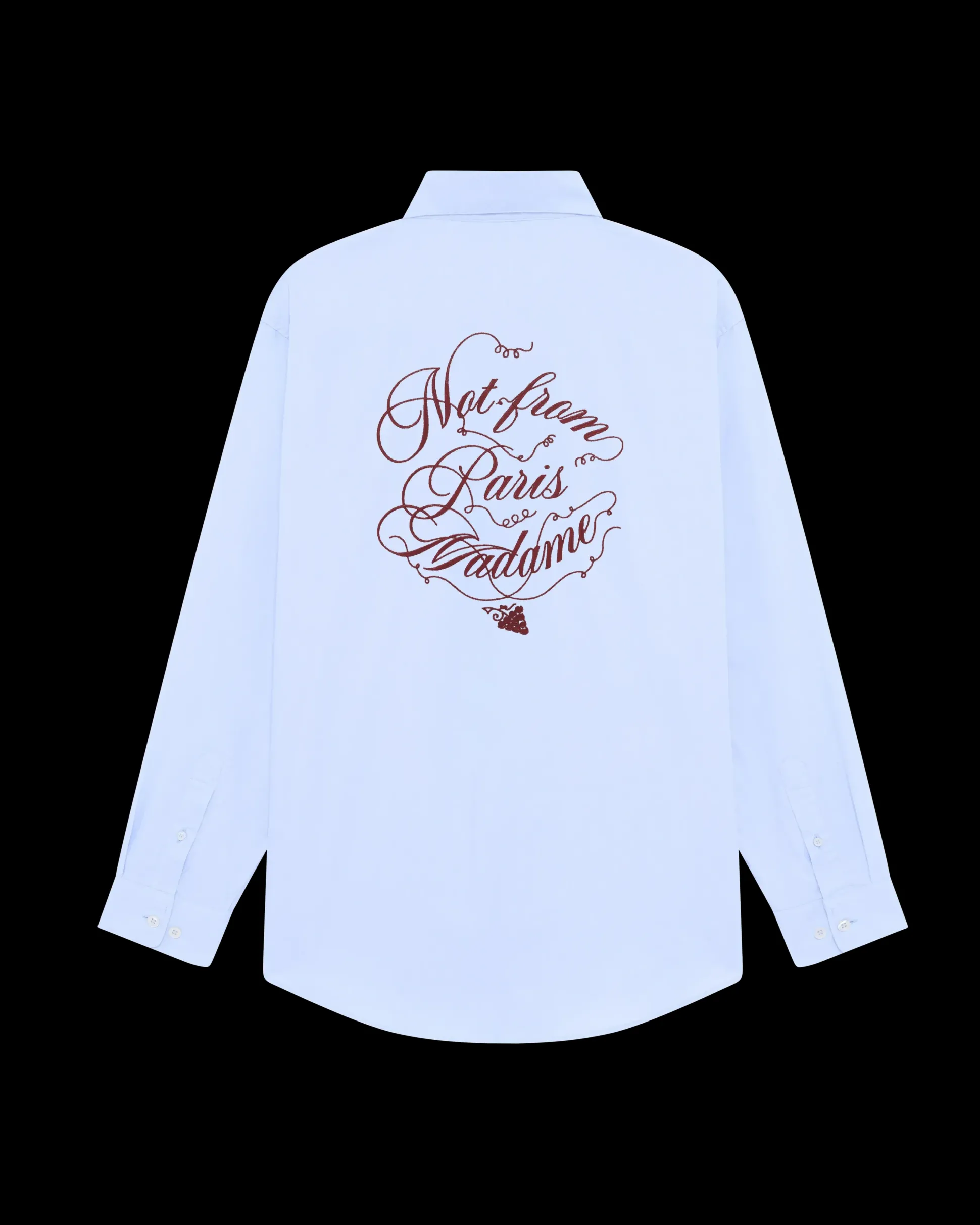 This light blue long-sleeved 100% cotton shirt is embroidered with the Slogan Vignes pattern on the front and back. It has a chest patch pocket, buttoned cuffs, six engraved front buttons and a shirt-tail hem.• Long-sleeved shirt• Slogan Vignes embroidery on the front and back• 1 chest patch pocket• Buttoned cuffs• Shirt-tail hem• 6 engraved front buttons