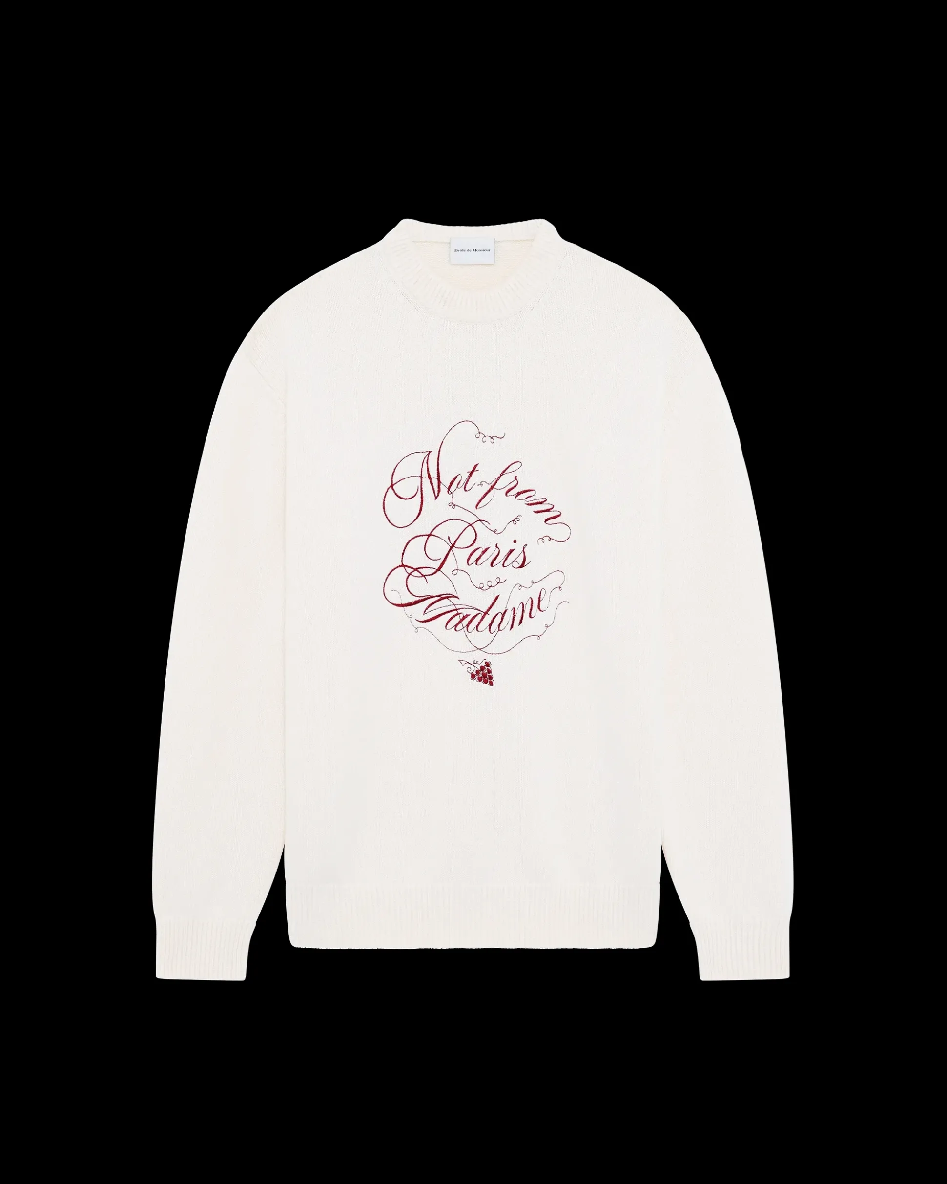 This cream wool and cotton knitted sweater is embroidered with the Slogan Vignes pattern on the front. It has long sleeves, a loose fit, a round neck and ribbed finishes.• Knitted sweater• Slogan Vignes embroidery on the front• Long sleeves• Loose fit• Round neck• Ribbed finishes• 50% wool and 50% cottonColor: Cream