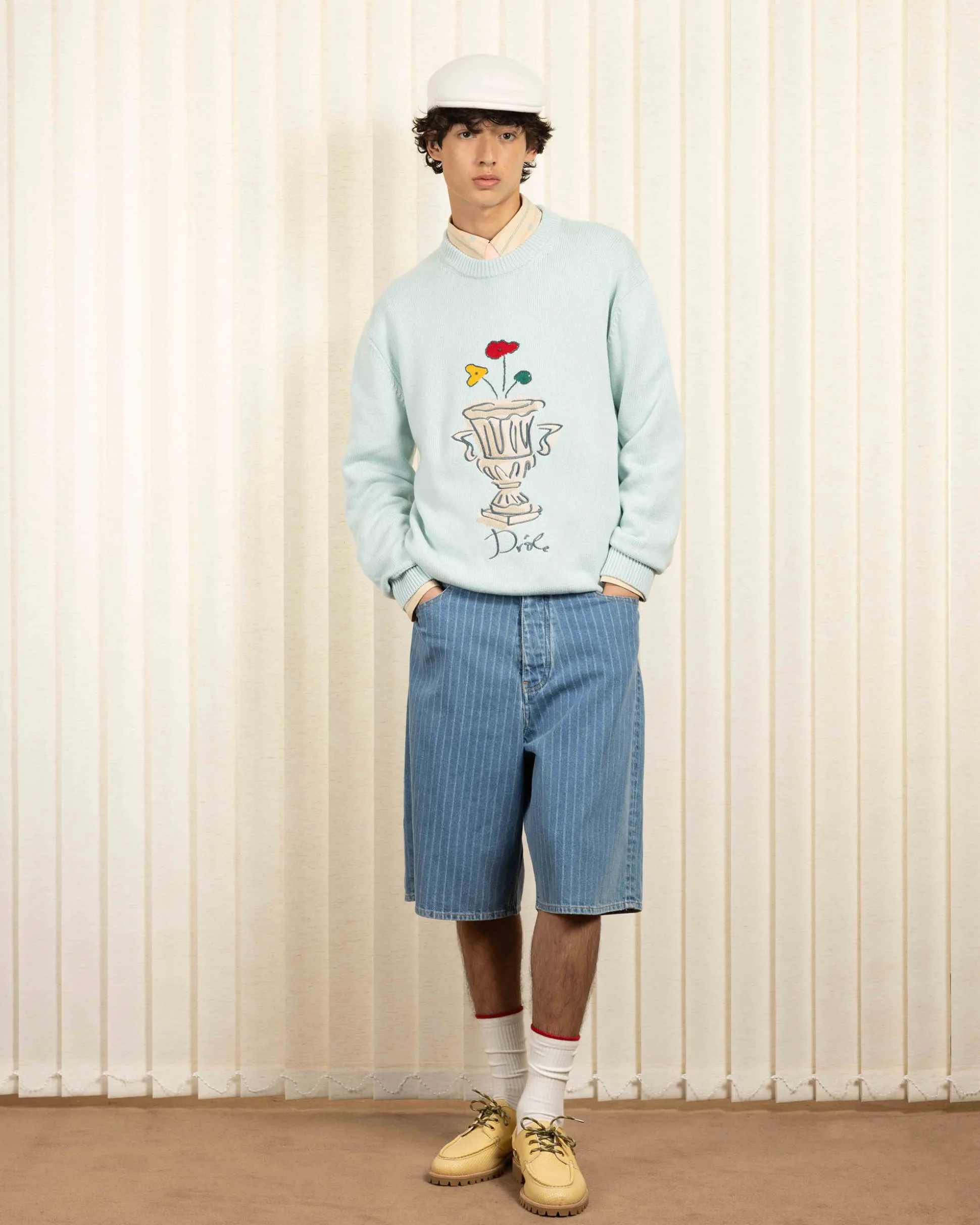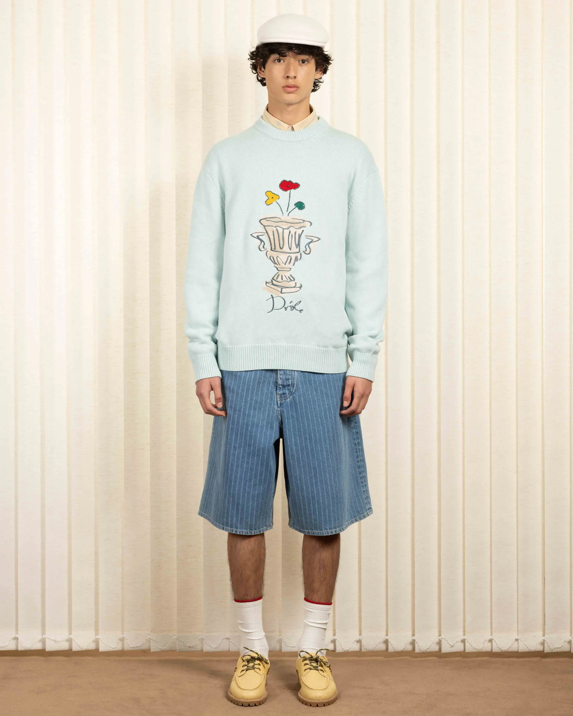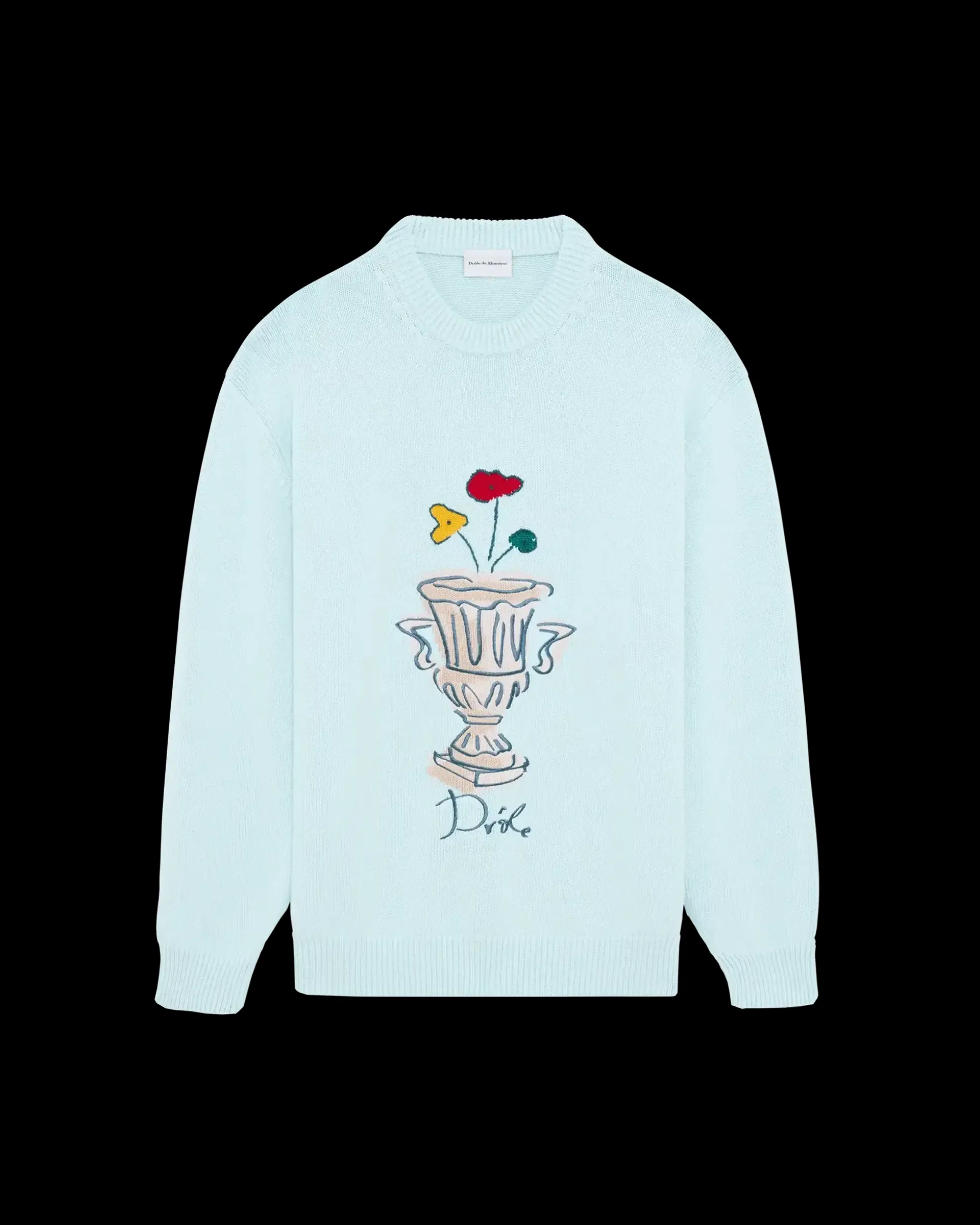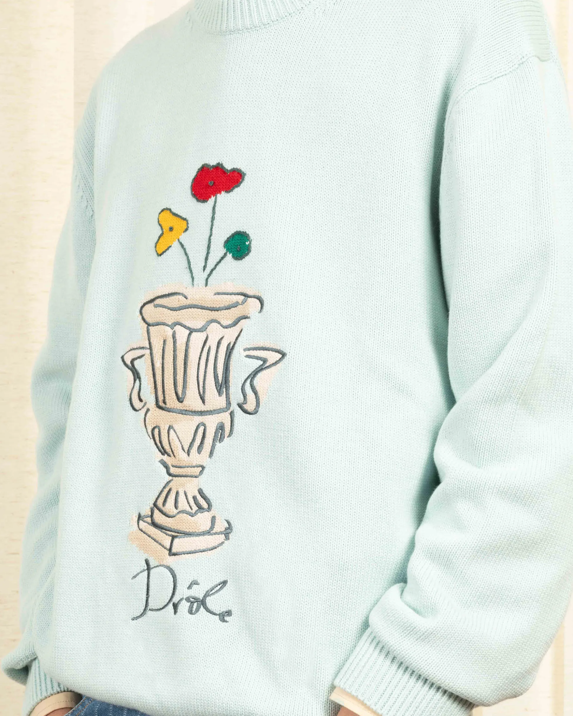 This light blue wool and cotton knitted sweater is embroidered with the Vase pattern on the front. It has long sleeves, a loose fit, a round neck and ribbed finishes.• Knitted sweater• Vase embroidery on the front• Long sleeves• Loose fit• Round neck• Ribbed finishes• 50% wool and 50% cottonColor: Light blue