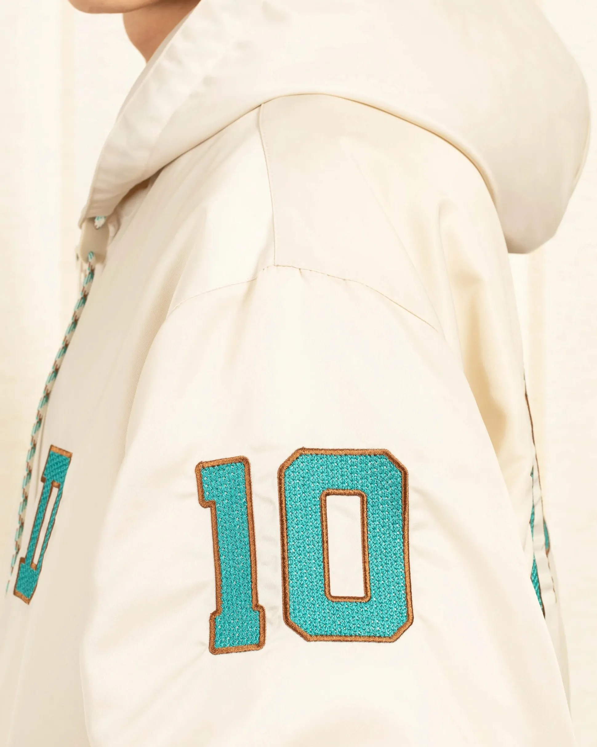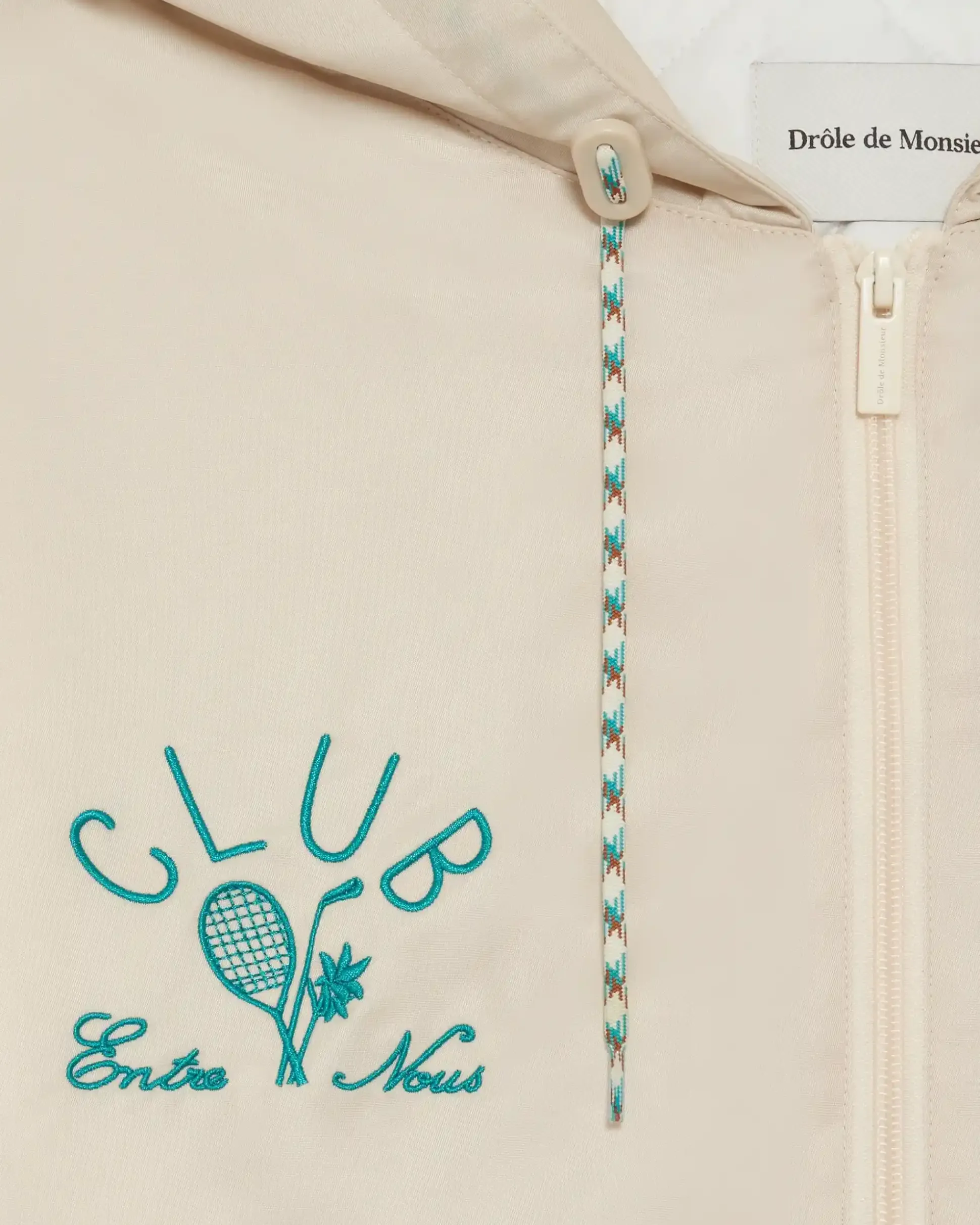 This mastic vareuse-style jacket features embroidered details on the sleeves, chest and back. It has a drawstring hood, a kangaroo pocket, a zip closure and ribbed finishes.• Hooded vareuse jacket• Embroidered sleeves, chest and back• Drawstring hood• 1 kangaroo pocket• Zip closure• Ribbed finishes• 100% nylonColor: Mastic