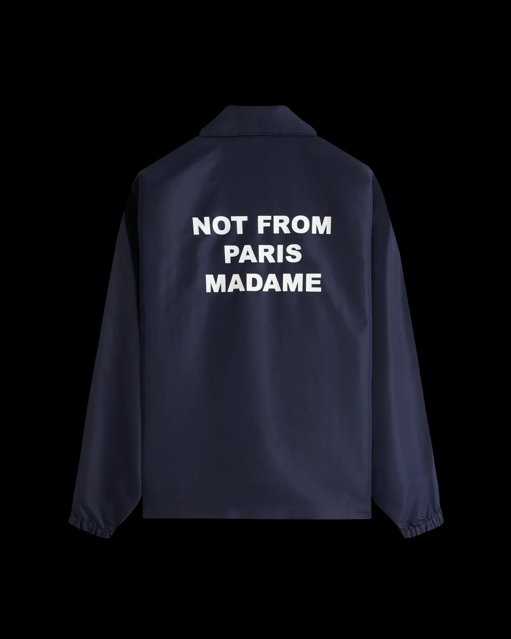 A timeless piece. This navy water-repellent jacket with elasticated wrists and engraved snap buttons is printed with the ‘Not From Paris Madame’ slogan front and back.• Nylon jacket in water-repellent technical fabric• Slogan printed on front and back• 2 welt pockets• 5 engraved snap buttons
