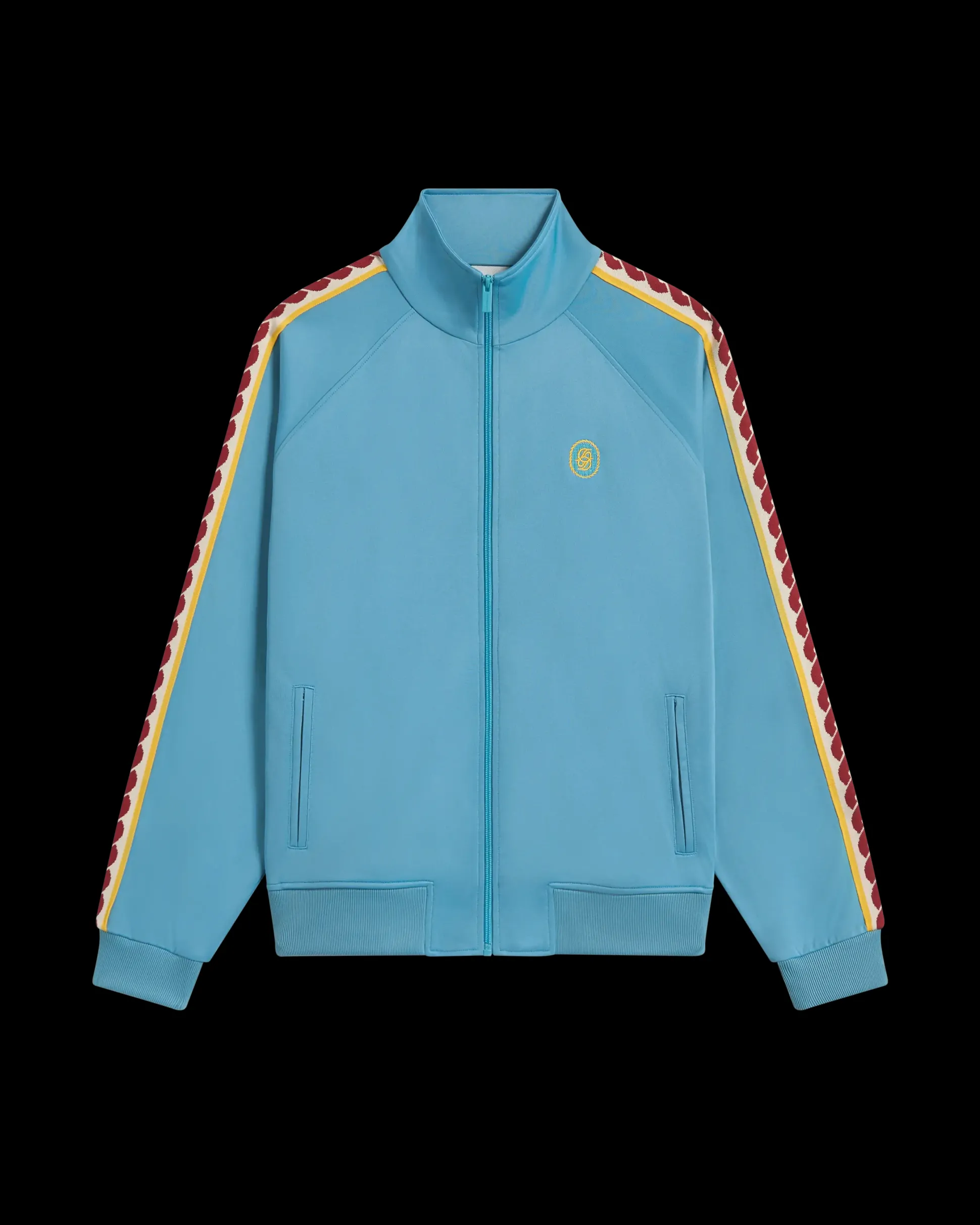 • Tracksuit jacket• Double interlock• Mirrored ‘D’ embroidery• High collar• 2 zippered welt pockets• Ribbed trim• Braided shoulder strap• Engraved central zipper• 52% polyester and 48% cotton