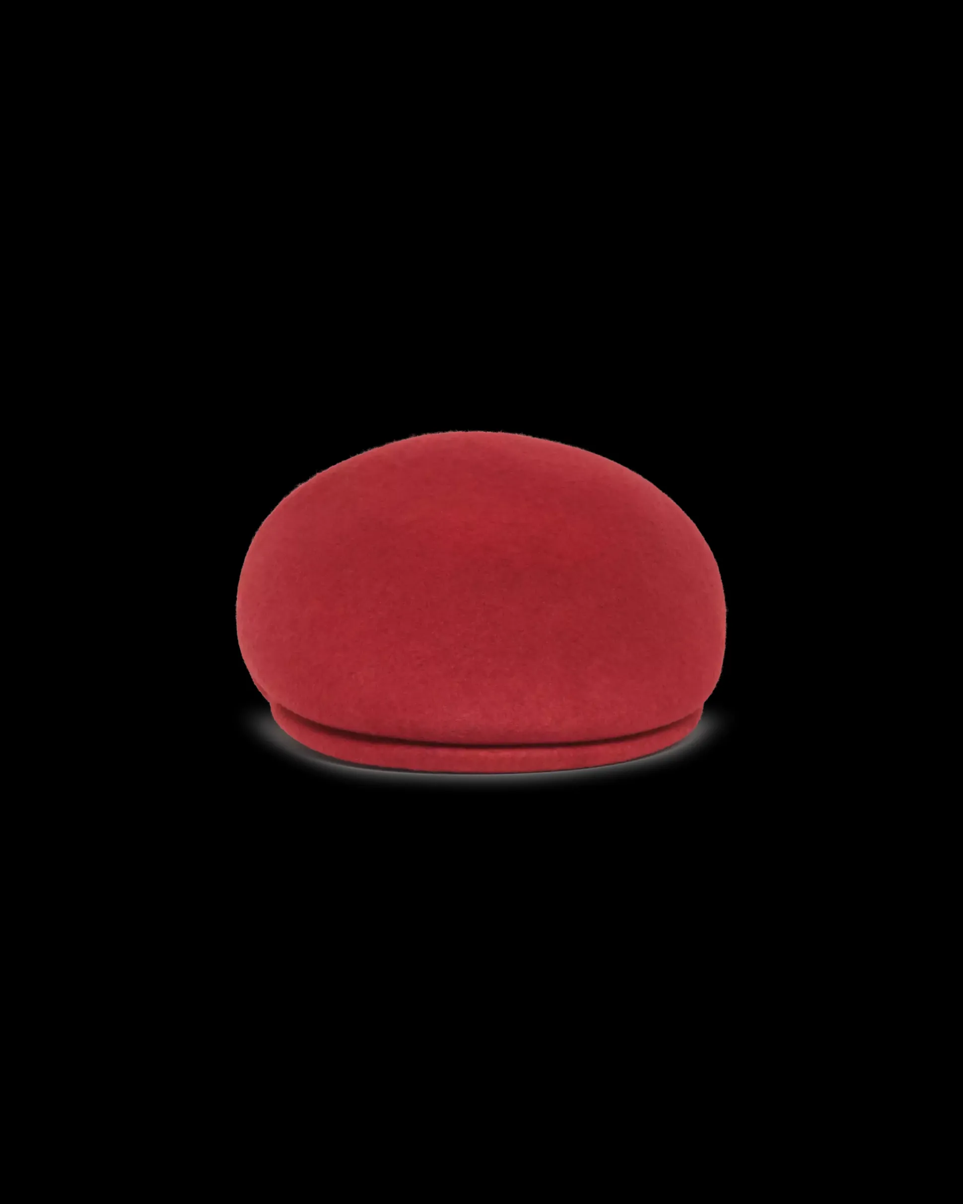 This red 100% wool felt beret features a ‘Drôle’ leather patch on the back and an elastic band inside.