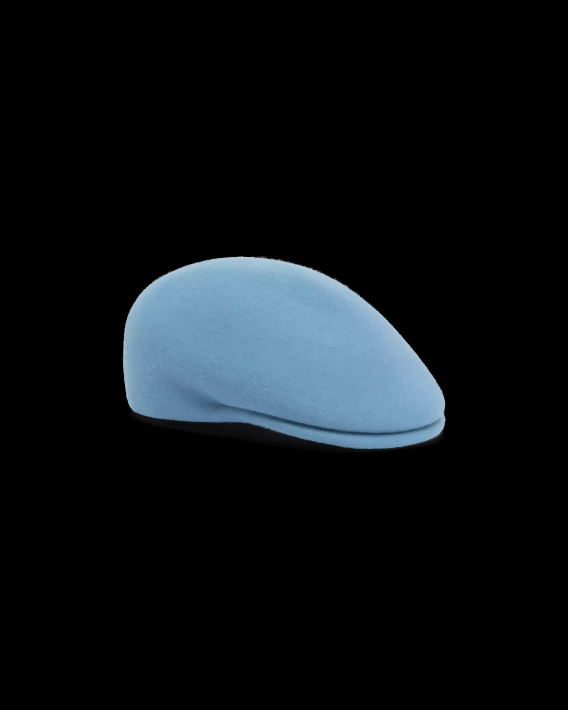 This light blue 100% wool felt beret features a ‘Drôle’ leather patch on the back and an elastic band inside.