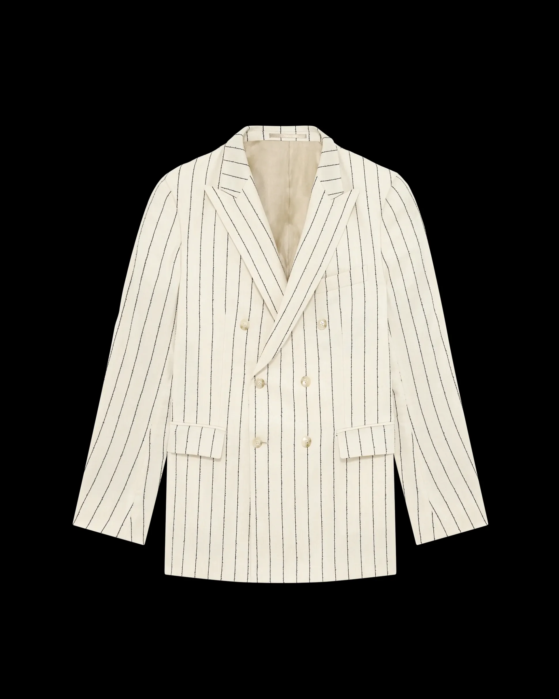 This ecru double-breasted cotton and linen blend suit jacket with a viscose lining has a demi plastron construction with soft shoulder pads. Details include a notched collar, a chest pocket, two flap pockets, inside pockets, a back slit, six engraved front buttons and three cuff buttons.• Double-breasted suit jacket• Viscose lining• Demi plastron construction with soft shoulder pads• Notched collar• 1 chest pocket • 2 flap pockets• Inside pockets• Back slit• 6 engraved front buttons• 3 cuff buttons• 52% lin, 2% polyester and 46% cottonColor: EcruMade in Europe
