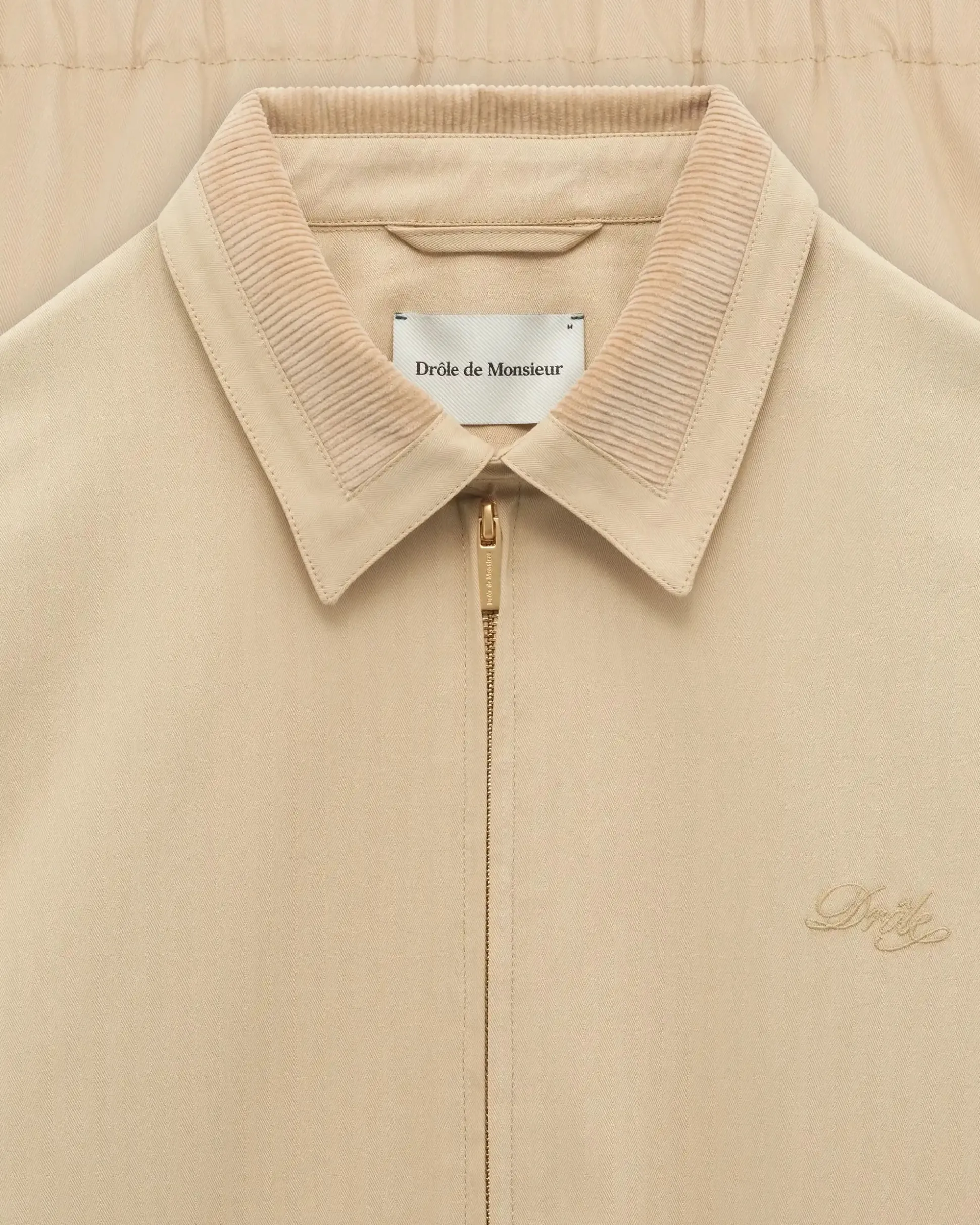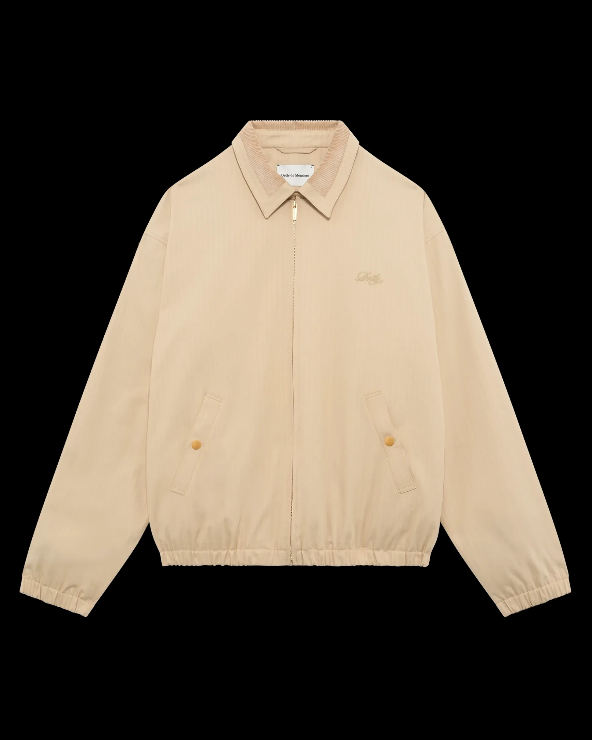 This beige cotton jacket features a corduroy collar and a ‘Drôle’ tone-on-tone embroidery on the chest. It has a regular fit, a cotton lining, a shirt collar with an engraved snap button, two raglan pockets with engraved press studs and a zip closure.• Cotton jacket with corduroy collar• ‘Drôle’ tone-on-tone embroidery on the chest• Regular fit• Cotton lining• Shirt collar with engraved snap button• 2 raglan pockets with engraved press studs• Zip closure• 98% cotton and 2% elastaneColor: BeigeMade in Europe