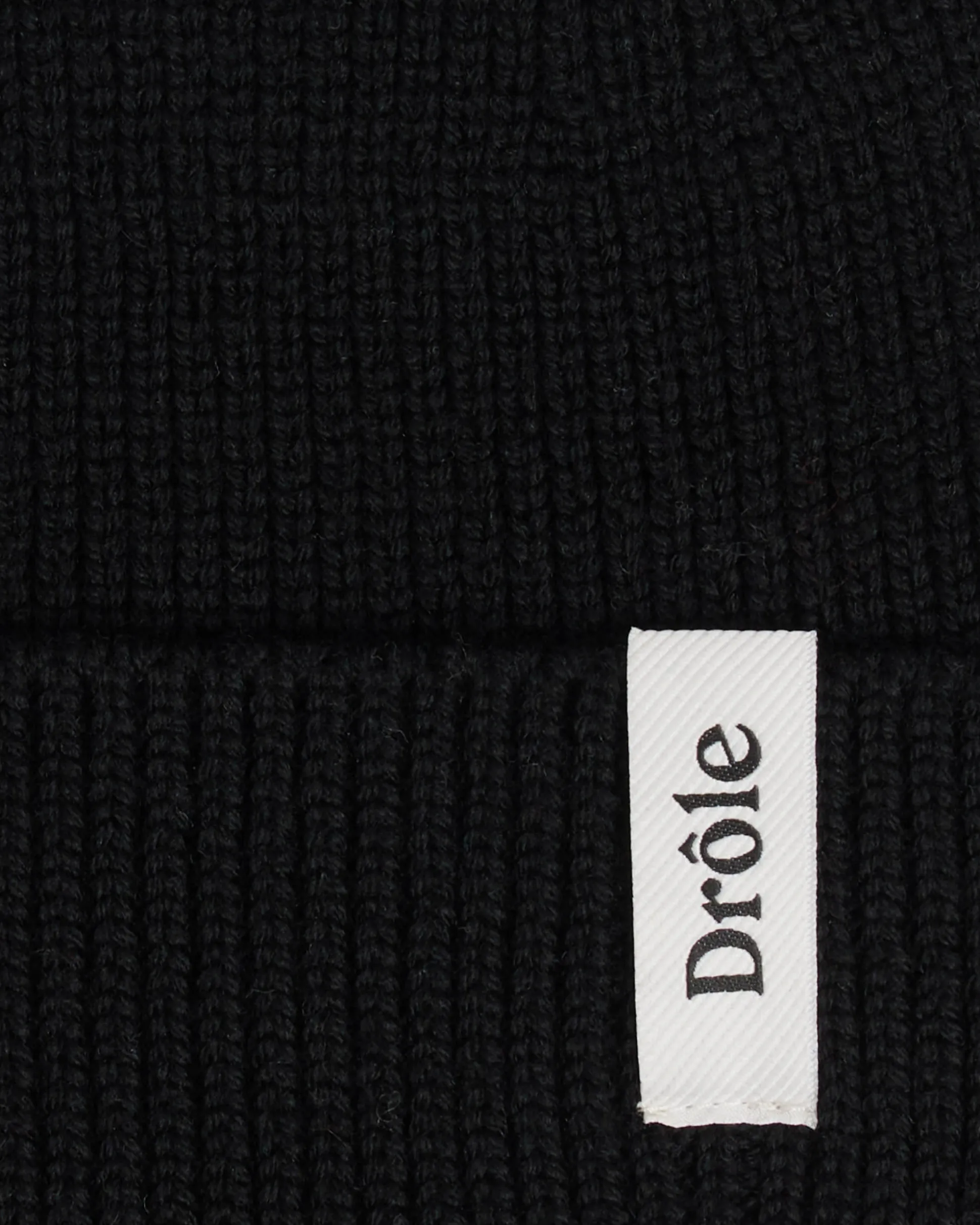 An essential. This black 100% wool beanie features a ‘Drôle’ woven label on the front.