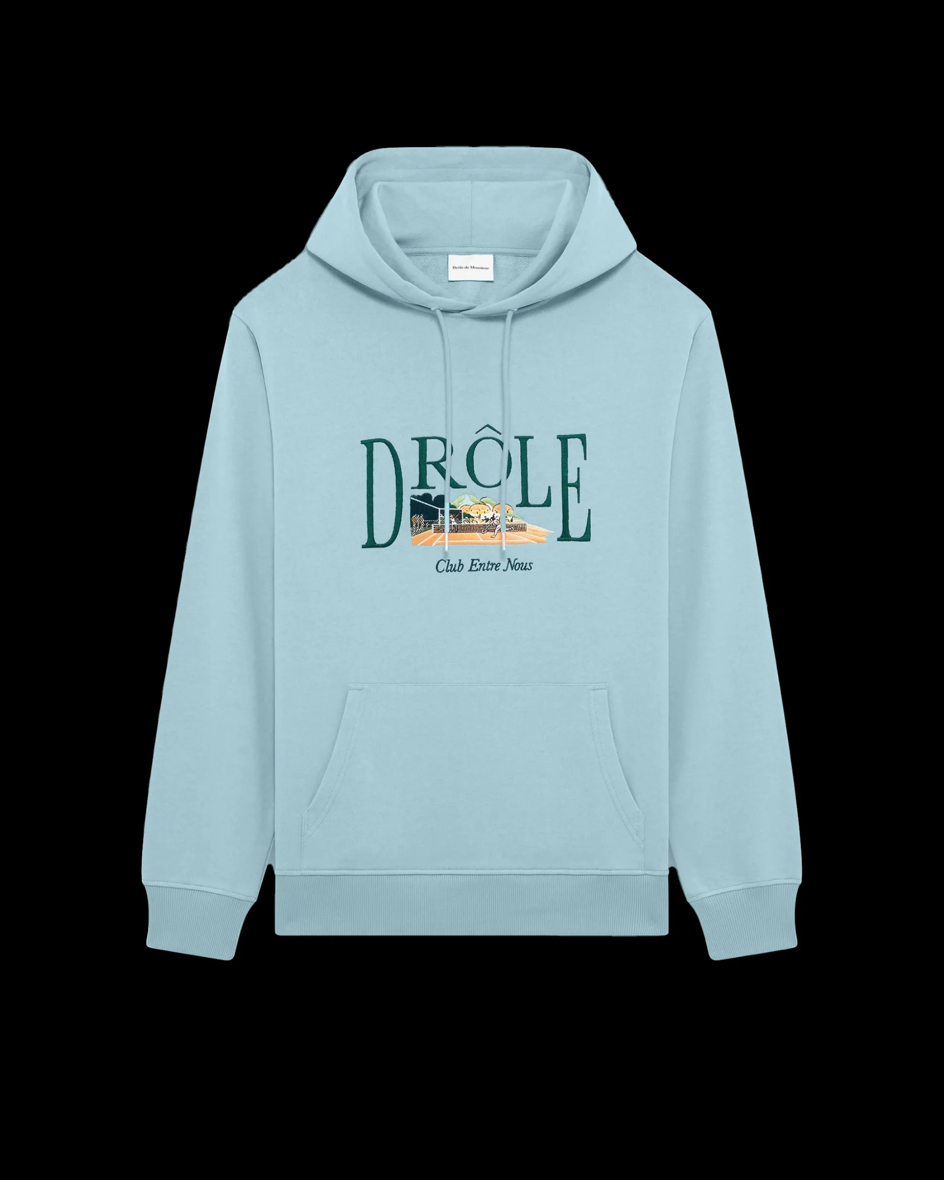 This light blue 100% cotton French terry hoodie is embroidered with the Country Club motif on the front. It has a drawstring hood with waxed tips, a kangaroo pocket and ribbed hem and cuffs.• French terry fabric• Tennis Court embroidery on the front• Drawstring hood with waxed tips• Kangaroo pocket• Ribbed hem and cuffs• 100% cotton – 430 GSMColor: Light blueMade in Portugal