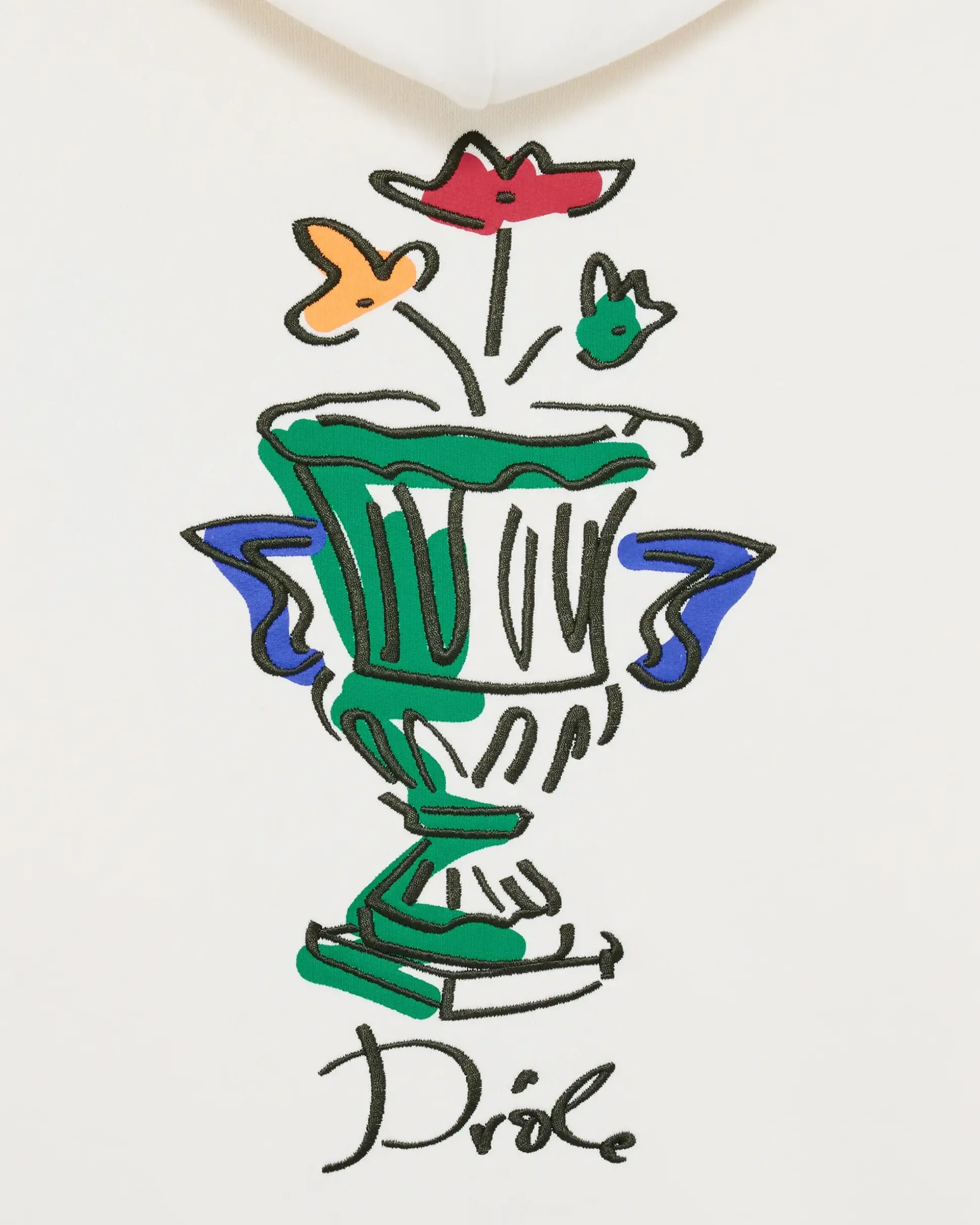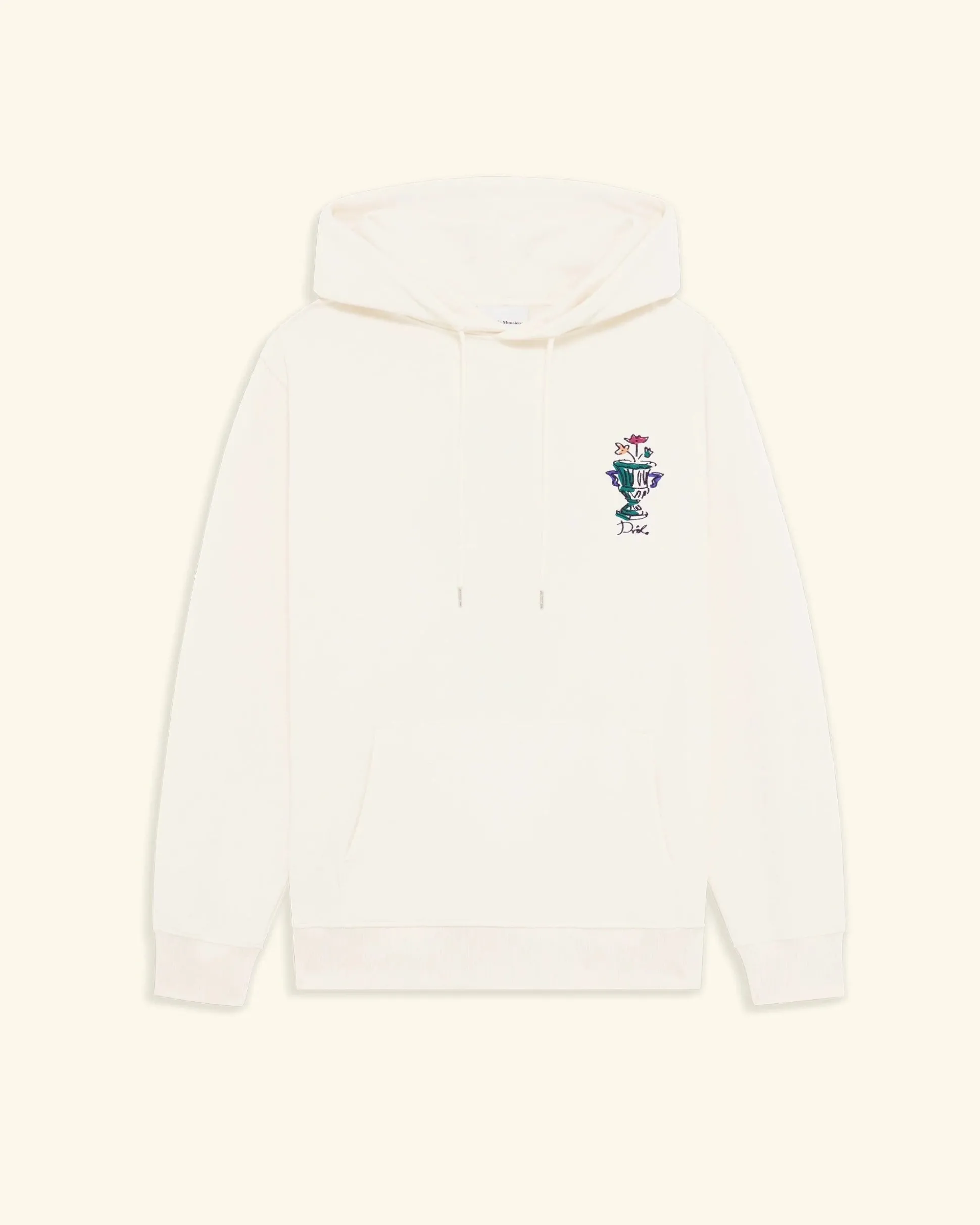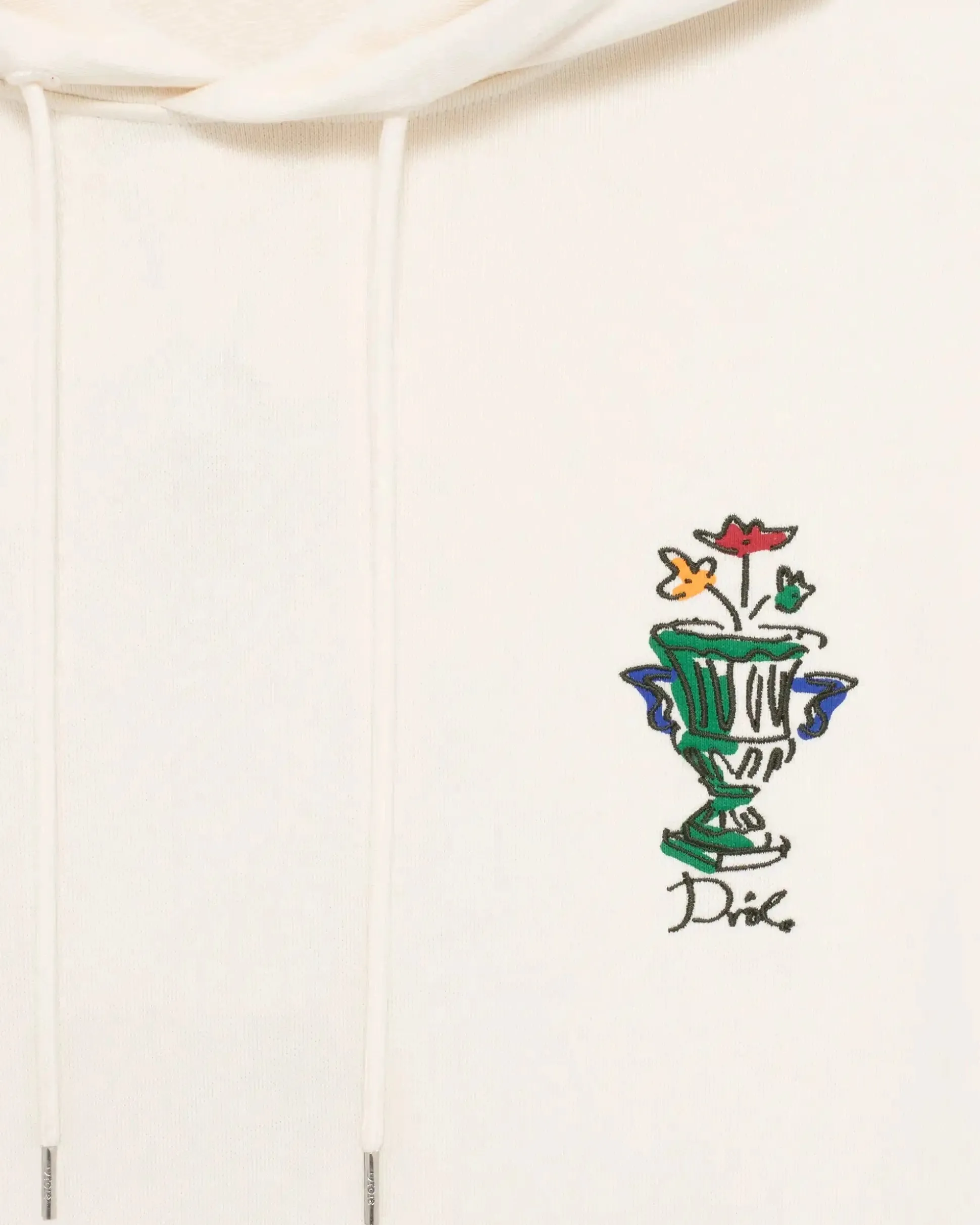 This cream 100% cotton French terry hoodie features the Vase pattern embroidered on the front and printed on the back. It has a drawstring hood with waxed tips, a kangaroo pocket and ribbed hem and cuffs.• Hoodie• French terry fabric• Front and back Vase embroidery/print• Drawstring hood with waxed tips• Kangaroo pocket• Ribbed hem and cuffs• 100% cotton – 430 GSMColor: CreamMade in Portugal