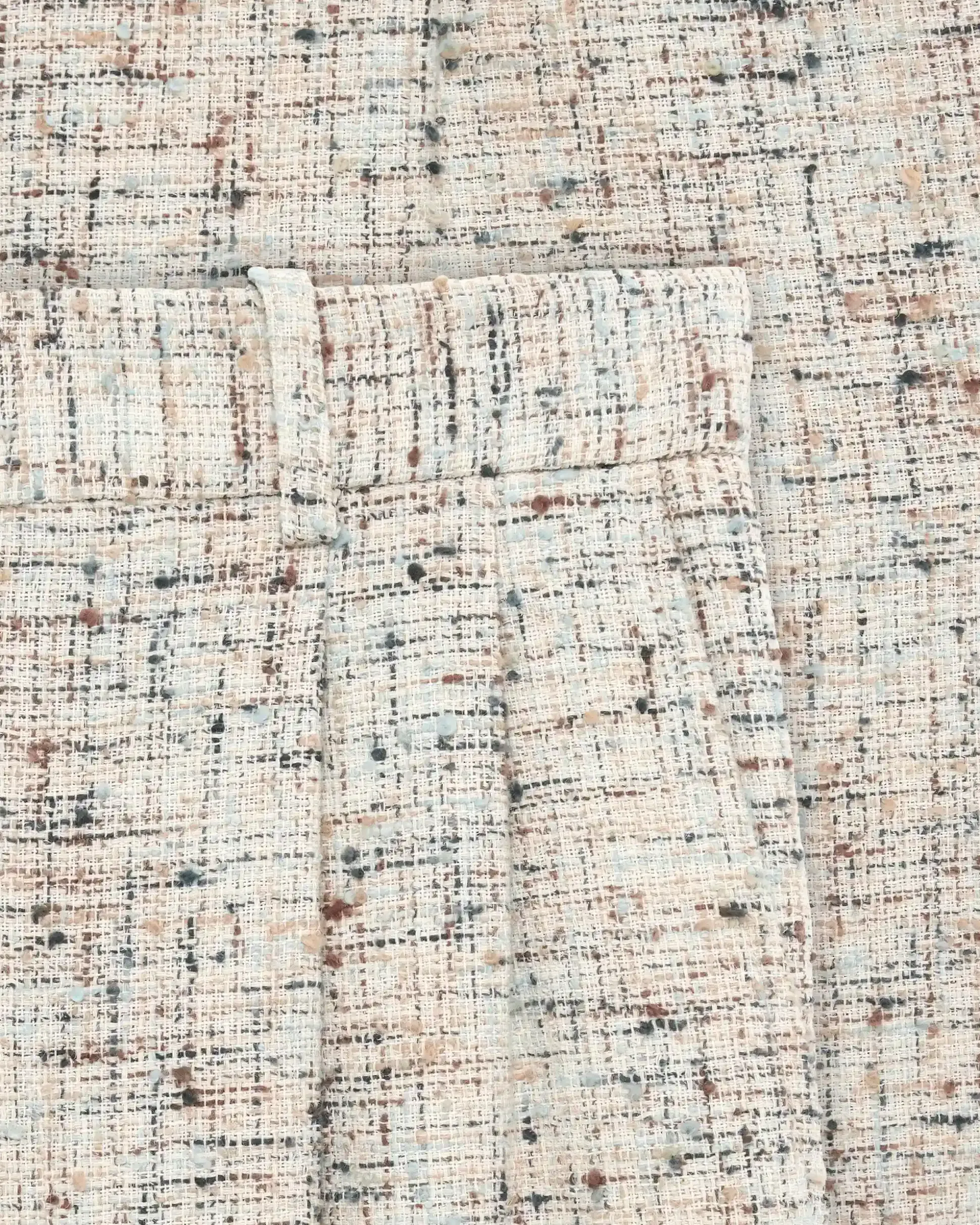 These ecru double pleated pants are made from a cotton blend tweed fabric. They have two Italian pockets, two piped pockets on the back, customized belt loops and a zip and hook closure.• Double pleated tweed pants• 2 Italian pockets• 2 piped pockets on the back• Customized belt loops• Zip and hook closure• 81% cotton, 15% polyester, 2% polyamid and 2% other fibersColor: EcruMade in Europe