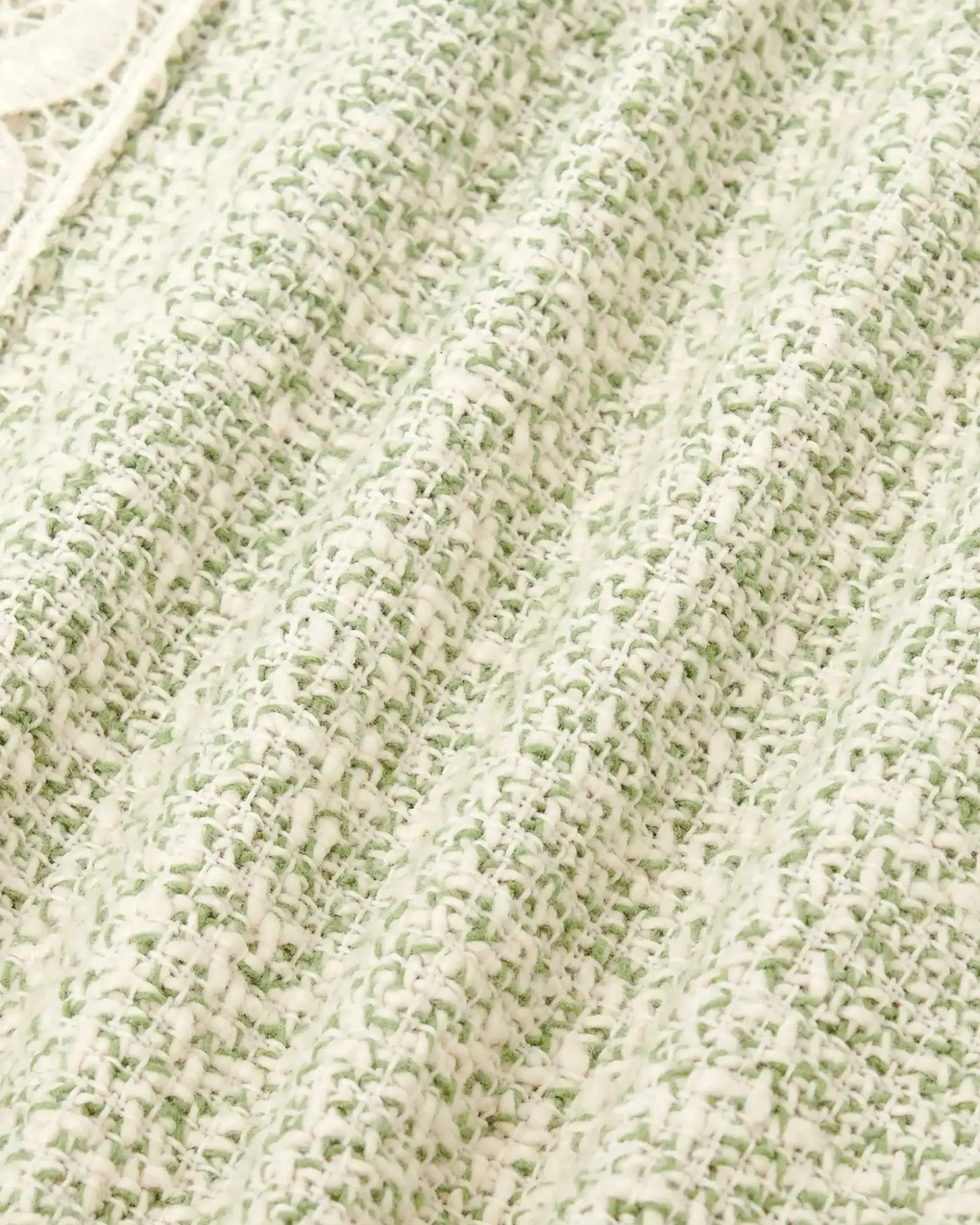 These light green cotton blend tweed pants feature guipure piping along the leg. They have an elasticated drawstring waist, two Italian pockets and one piped pocket on the back.• Tweed pants• Guipure piping along the leg• Elasticated waist with drawstring • 2 Italian pockets• 1 piped pocket on the back• 68% cotton, 27% polyester and 5% other fibersColor: Light greenMade in Portugal