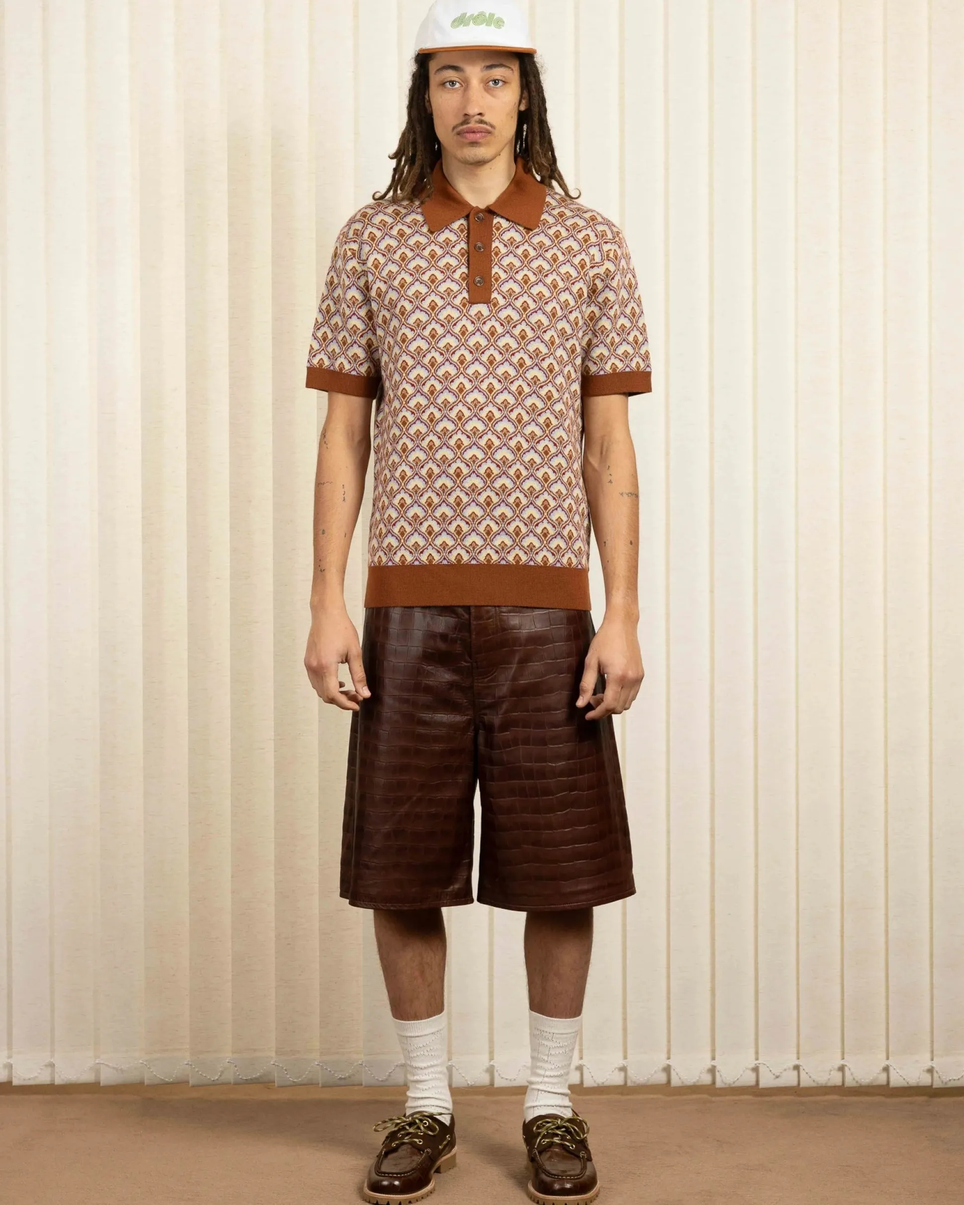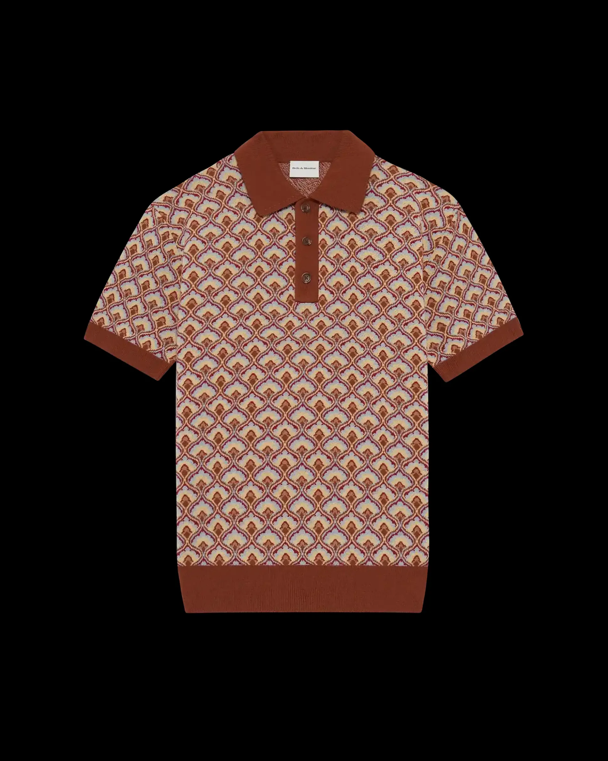 This brown short-sleeved polo shirt features an all-over Tapisserie jacquard. Made from 100% Merino wool, it has a regular fit, a shirt collar with three buttons and ribbed finishes.• Short-sleeved polo• All-over Tapisserie jacquard• Regular fit• Shirt collar with 3 buttons• Ribbed finishes• 100% Merino woolColor: Multicolor