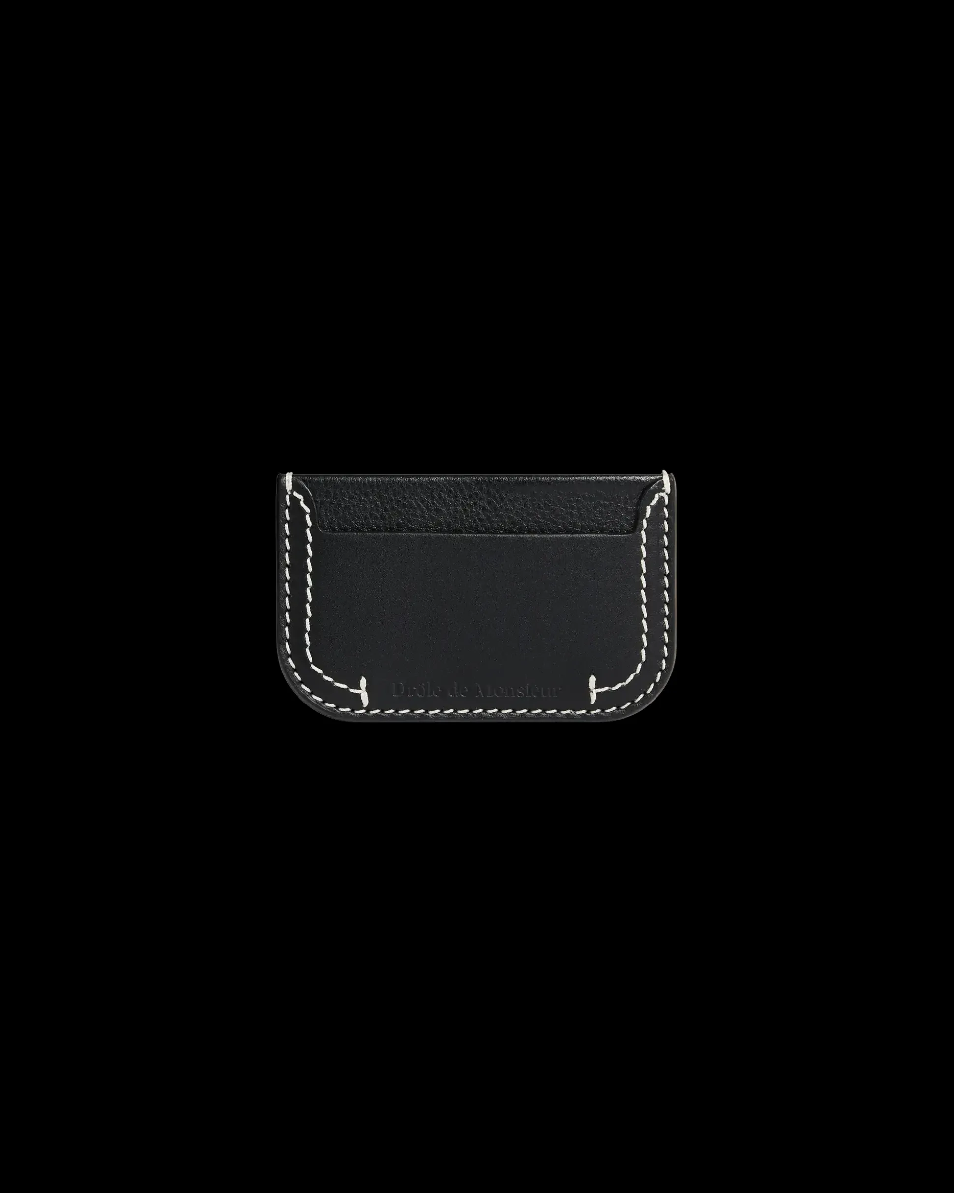 Small and practical. This leather and canvas cardholder has two card pockets and a front pocket with embossed logo to hold your essentials. The black leather is framed with contrast stitching.