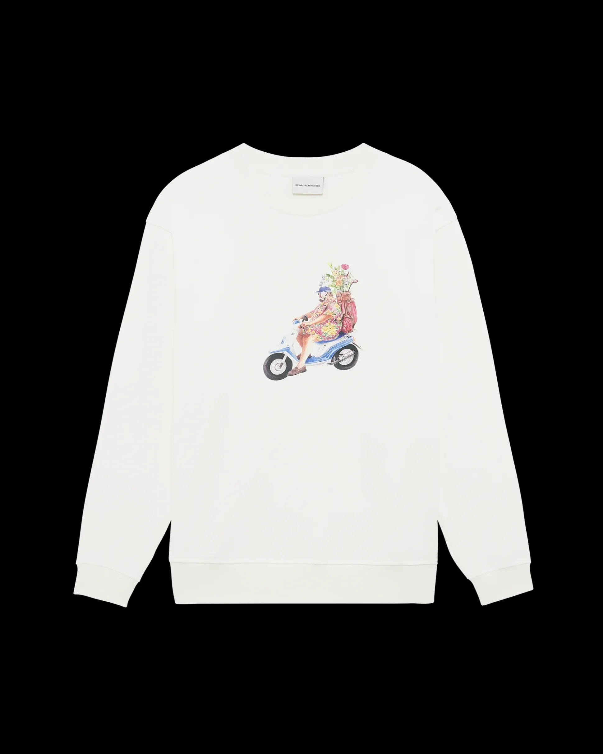 This off-white 100% cotton French terry sweatshirt has a round collar and ribbed finishes. It features the Golfeur print on the front.• Long-sleeved sweatshirt• French terry fabric• Golfeur print on the front• Round collar• Ribbed hem and cuffs• 100% cotton – 430 GSMColor: Off white Made in Portugal