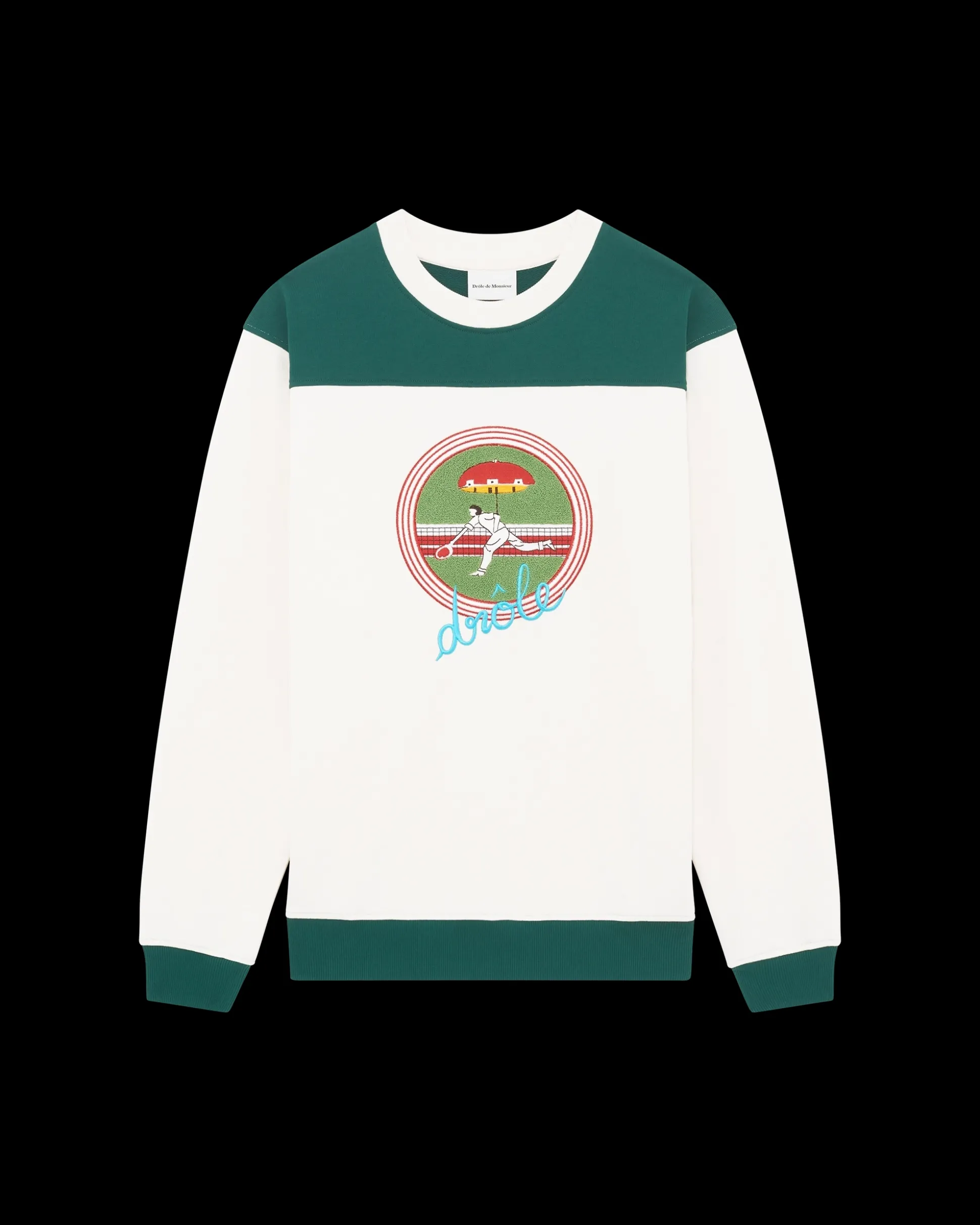 This off-white 100% cotton French terry sweatshirt has a round collar and ribbed finishes. It is embroidered with the Tennis motif on the front.• Long-sleeved sweatshirt• French terry fabric• Tennis embroidery on the front• Round collar• Ribbed hem and cuffs• 100% cotton – 430 GSMColor: Off whiteMade in Portugal