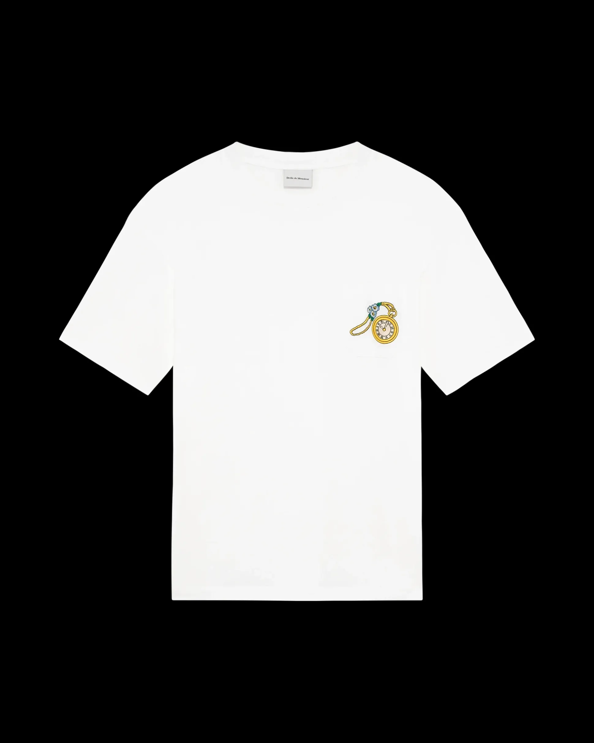 This off-white 100% cotton jersey t-shirt has a chest patch pocket and a ribbed neckline. It is embroidered with the Gousset motif on the front.• Jersey fabric • Gousset embroidery on the front• 1 chest patch pocket• Ribbed neckline• 100% cotton – 230 GSMColor: Off whiteMade in Portugal