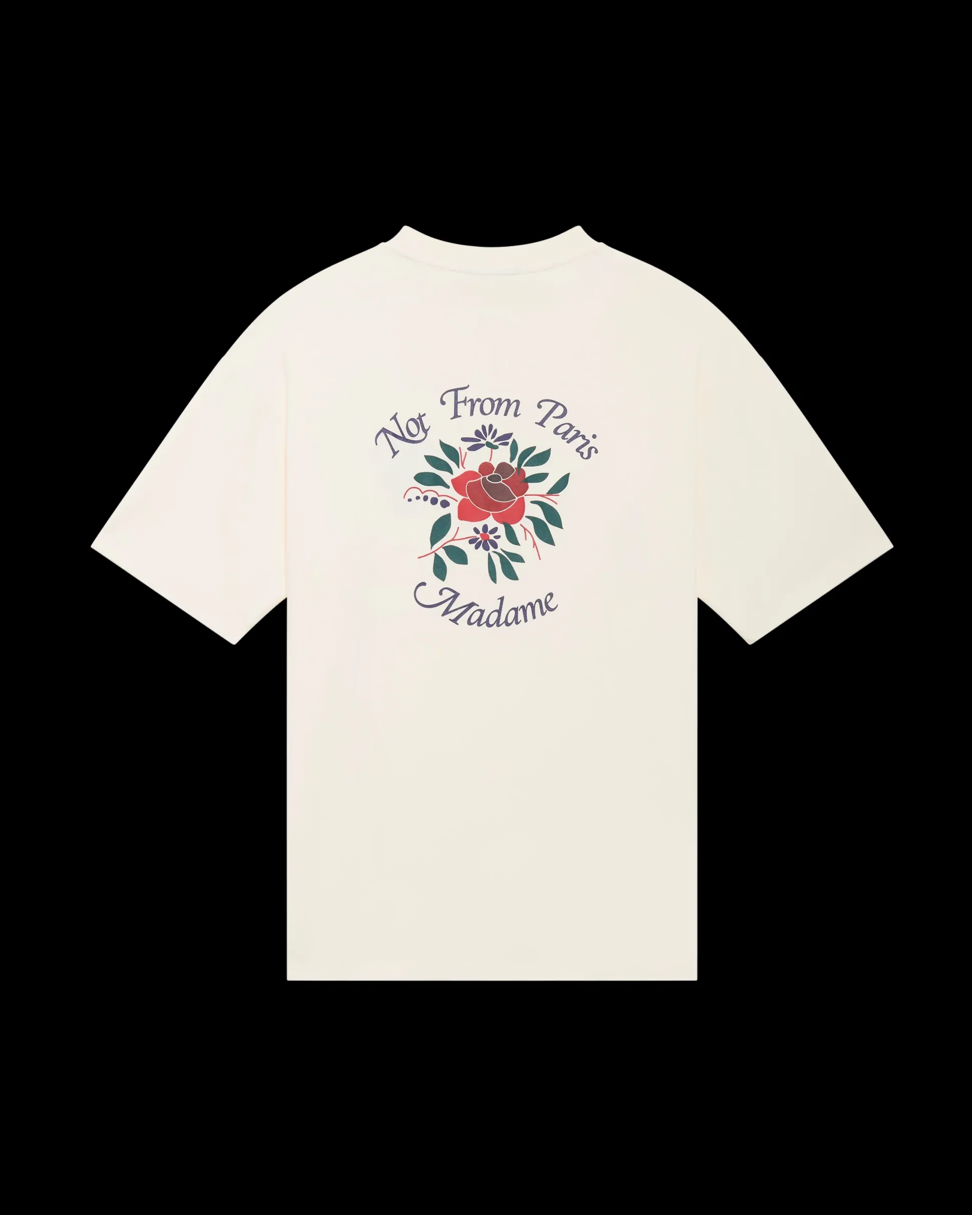 • Front and back slogan fleurs print• Ribbed neckline• Interlock fabric • 100% cotton – 240 GSM