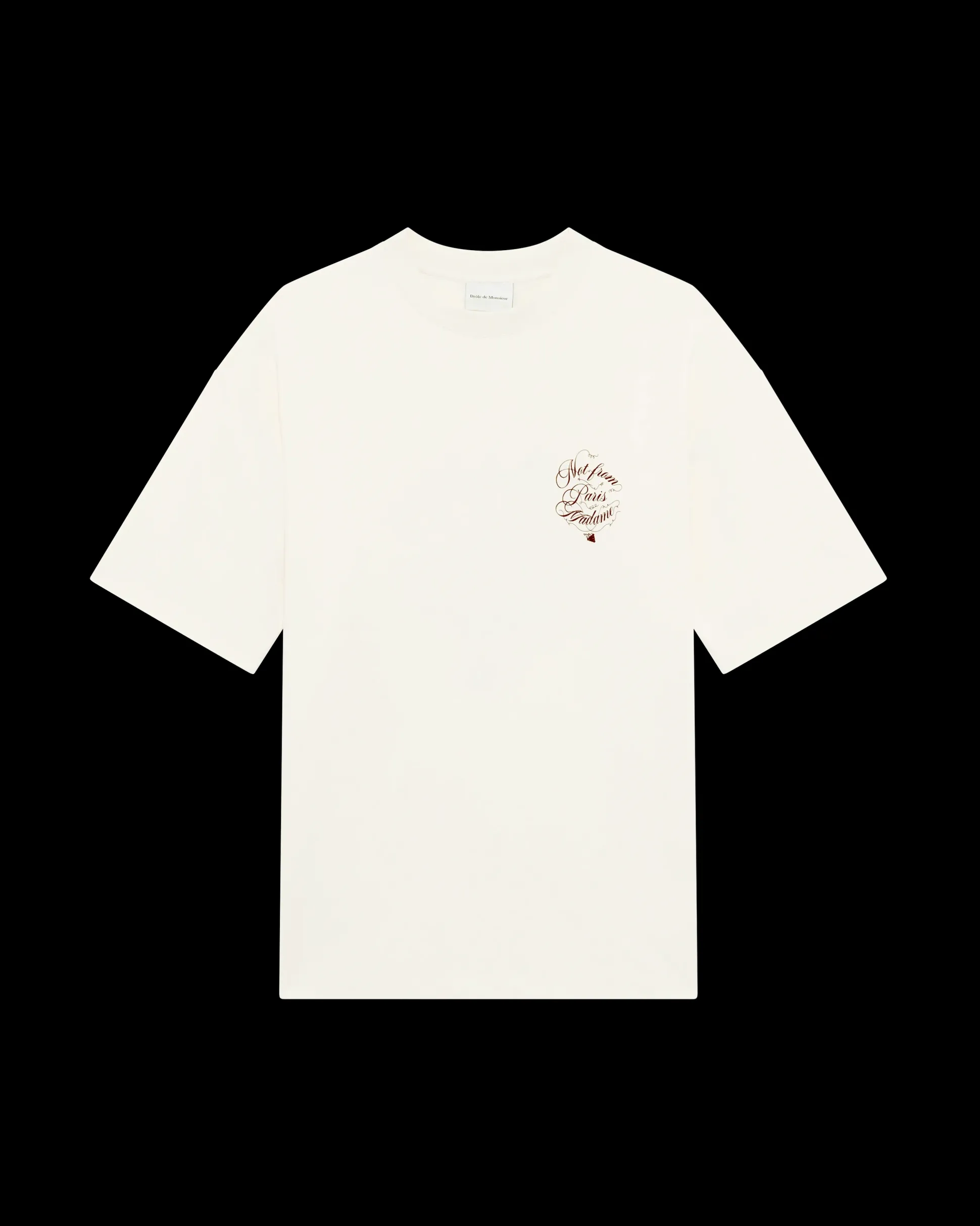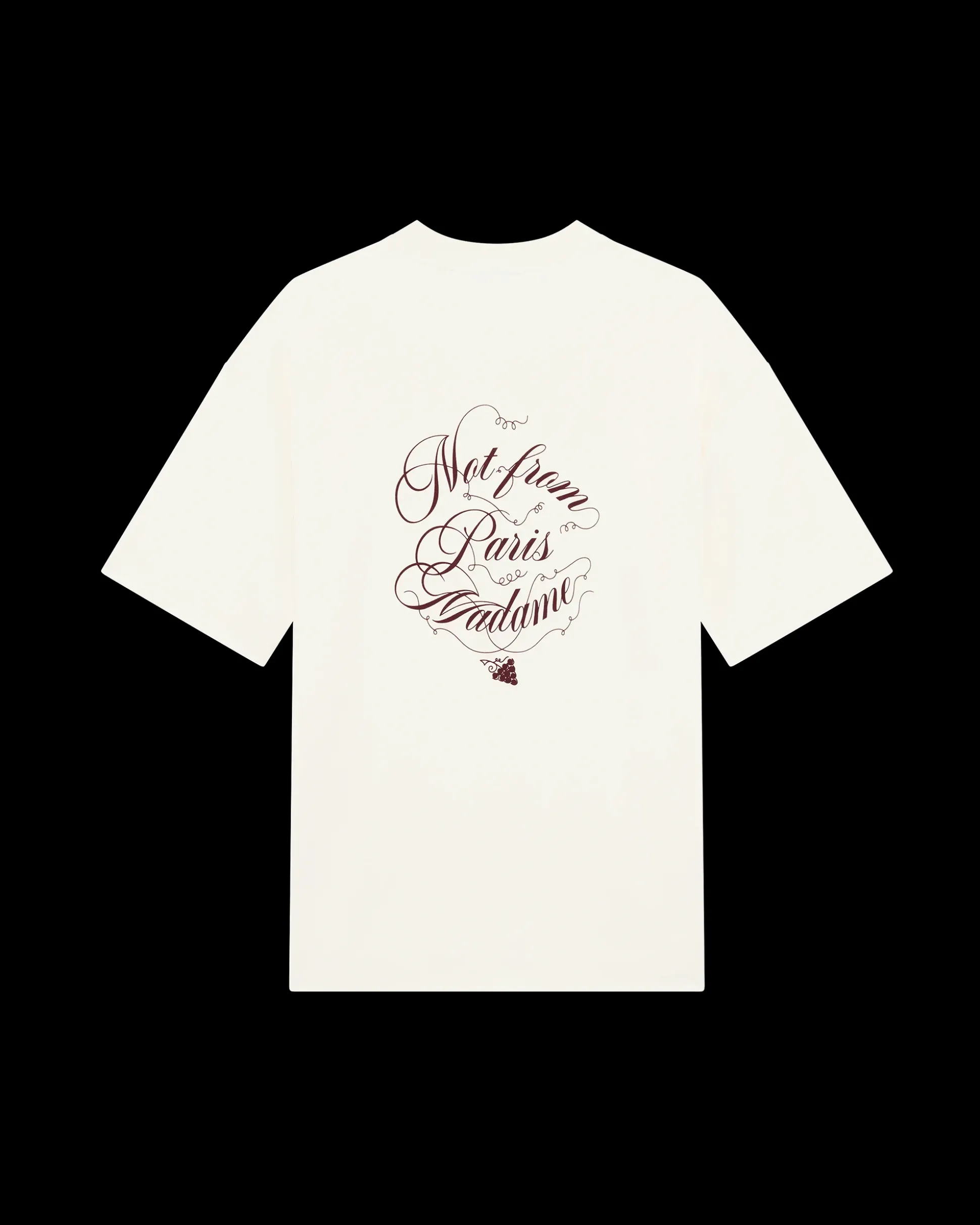 This cream 100% cotton interlock t-shirt with a ribbed neckline features the Slogan Vignes print on the front and back.• T-shirt• Interlock fabric • Chest and back Slogan Vignes print• Ribbed neckline• 100% cotton – 240 GSMColor: CreamMade in Portugal