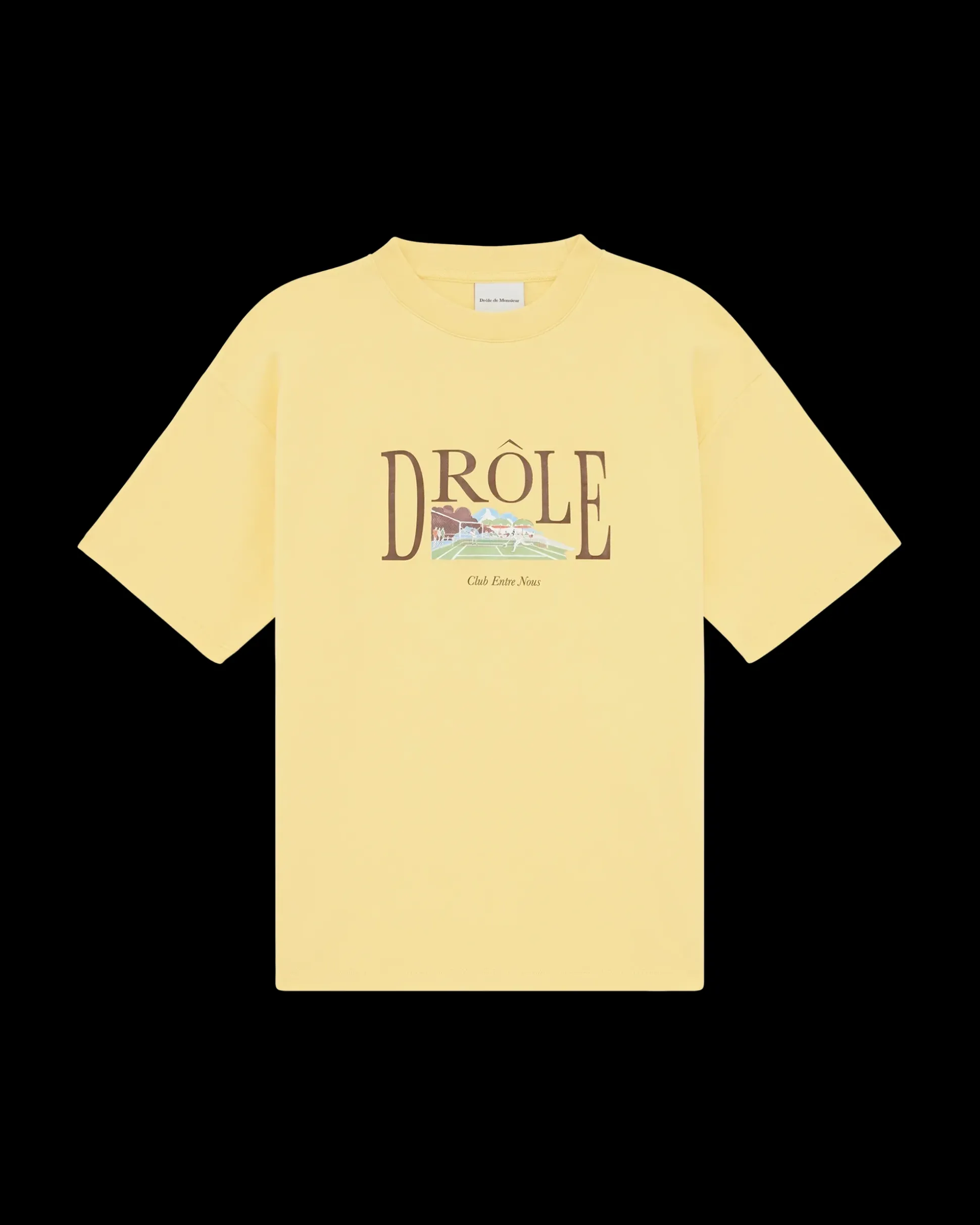 This light yellow 100% cotton interlock t-shirt with a ribbed neckline features the Tennis Court motif printed and embroidered on the front.• Interlock fabric • Front Tennis Court print and embroidery• Ribbed neckline• 100% cotton – 240 GSMColor: Light yellowMade in Portugal